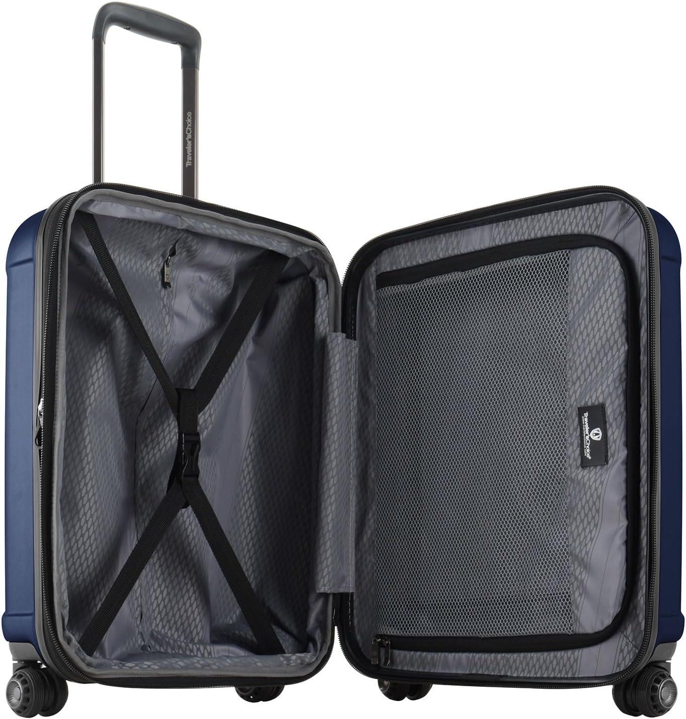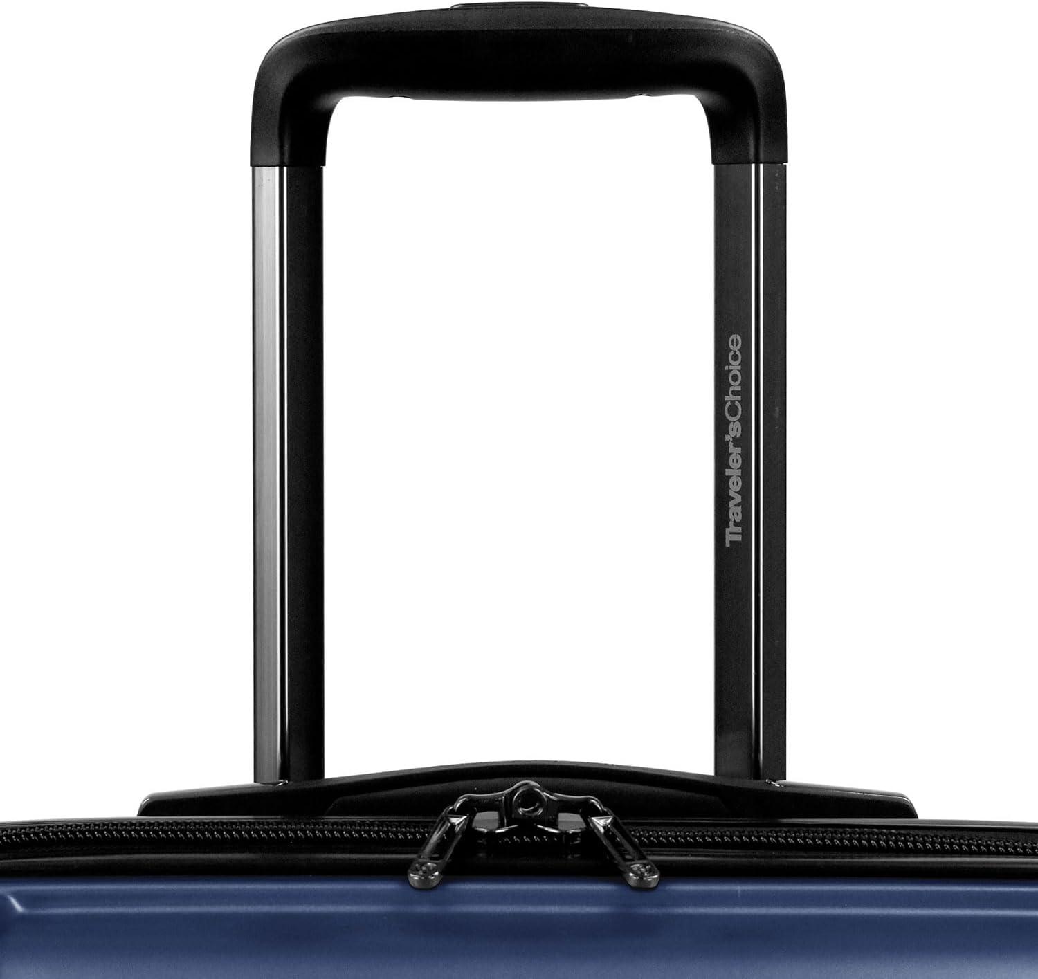 Travel like a pro with Traveler's Choice Art of Travel 2-Piece Hardside Expandable Luggage Set, ideal for international adventures. Crafted with a durable hard shell featuring a textured finish, it offers superior protection for your belongings. The telescopic handle system ensures effortless maneuverability and height adjustment to suit your needs. Patented cyclone dual spinner wheels provide smooth and quiet gliding on any terrain. Convenient grip handles on the top, bottom, and side make lifting a breeze. Pack and organize efficiently with a fully lined interior and zippered mesh pockets. Carry-on Dimensions: 20.5“H x 16.75”W x 9“D (+2” Exp.), Carry-on Weight: 7.3 lbs; Large Dimensions: 29”H x 21“W x 12.5“D (+2” Exp.), Large Weight: 10.6 lbs