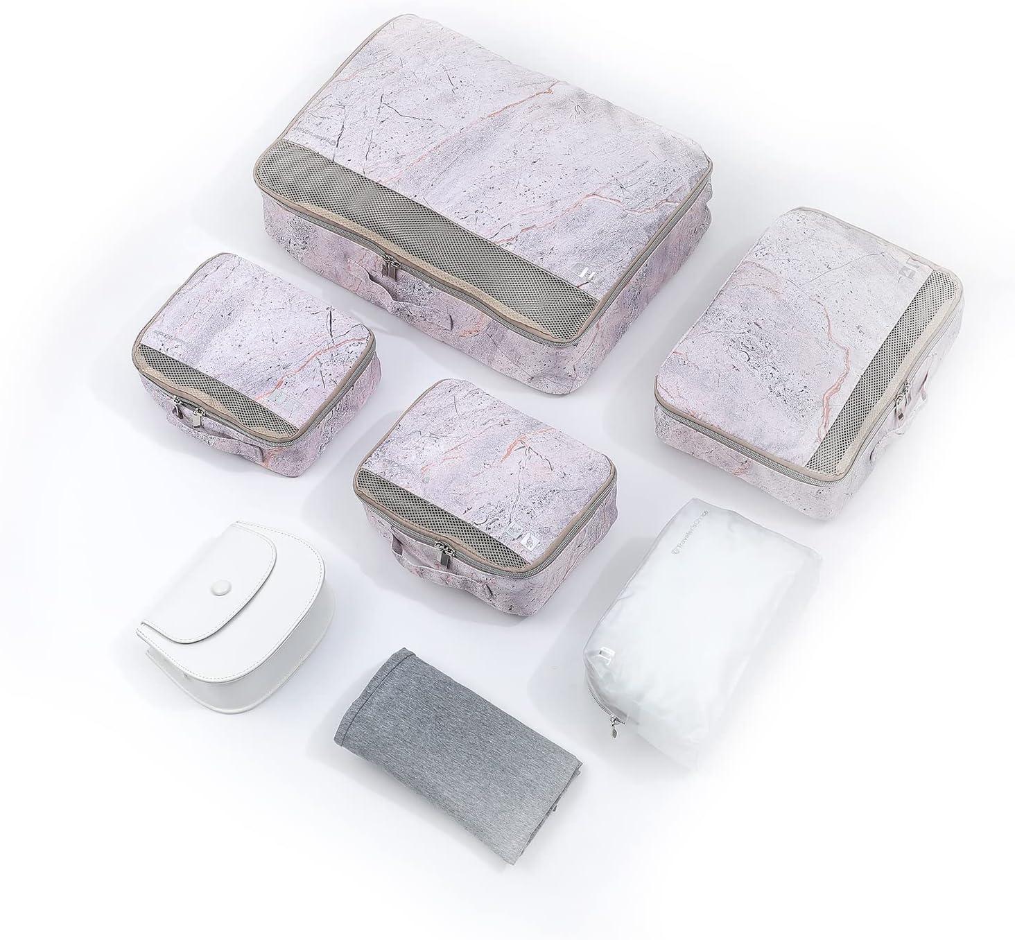 Traveler’s Choice Cloverland Packing Cubes 5 Piece Set, Black, One Size(Marble Pink)