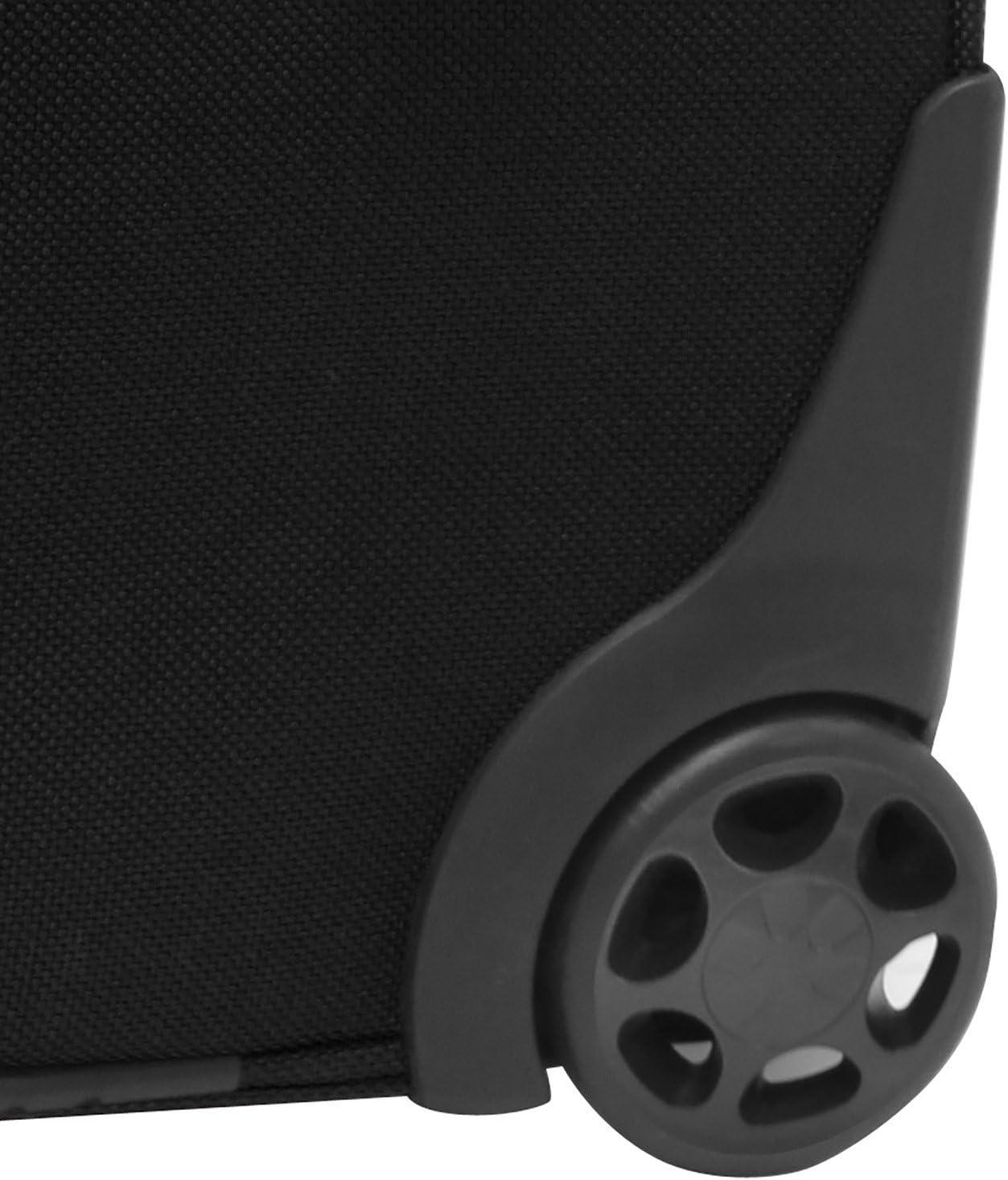 Quiet wide-stance and oversized rolling wheel system allows you to maneuver in tight spaces and provides effortless movement and stability; full interior lining with zippered mesh pocket and tie-down straps secure your belongings