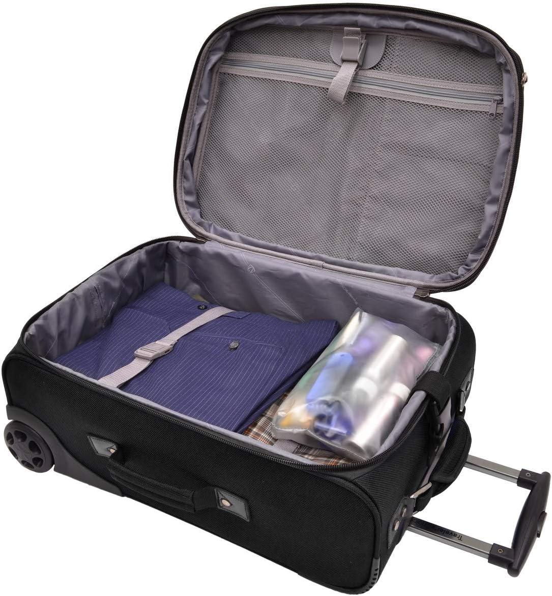 Traveler’s Choice Conventional II Lightweight Expandable Rolling Luggage is designed to provide travelers comfort, functionality, reliability, and peace of mind. It features lightweight yet extremely durable construction. It has oversized in-line skate wheels and push button & self-locking retractable handle system. Its expandable feature offers more packing capacity. Exterior Dimensions: 26in. H x 16in. W x (10in. + 2in.)D 9.8 lbs. Interior Dimensions: 25in. H x 16in. W x (9.5in. + 2in.)D
