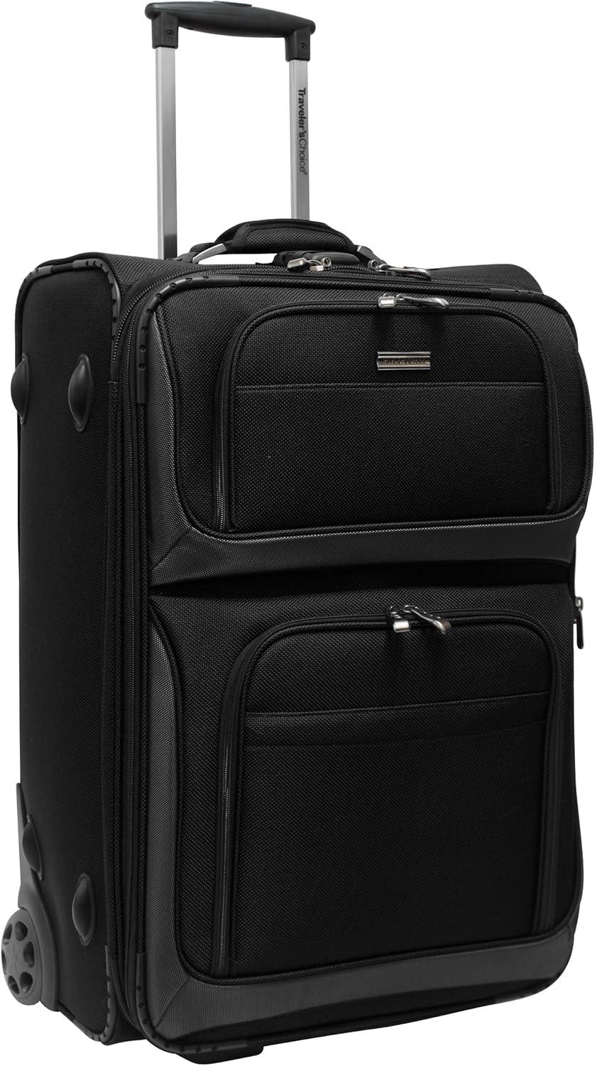 Traveler’s Choice Conventional II Expandable Rugged Rollaboard Luggage, Black, Checked-Medium 25-Inch (TC0804K25)(Black)