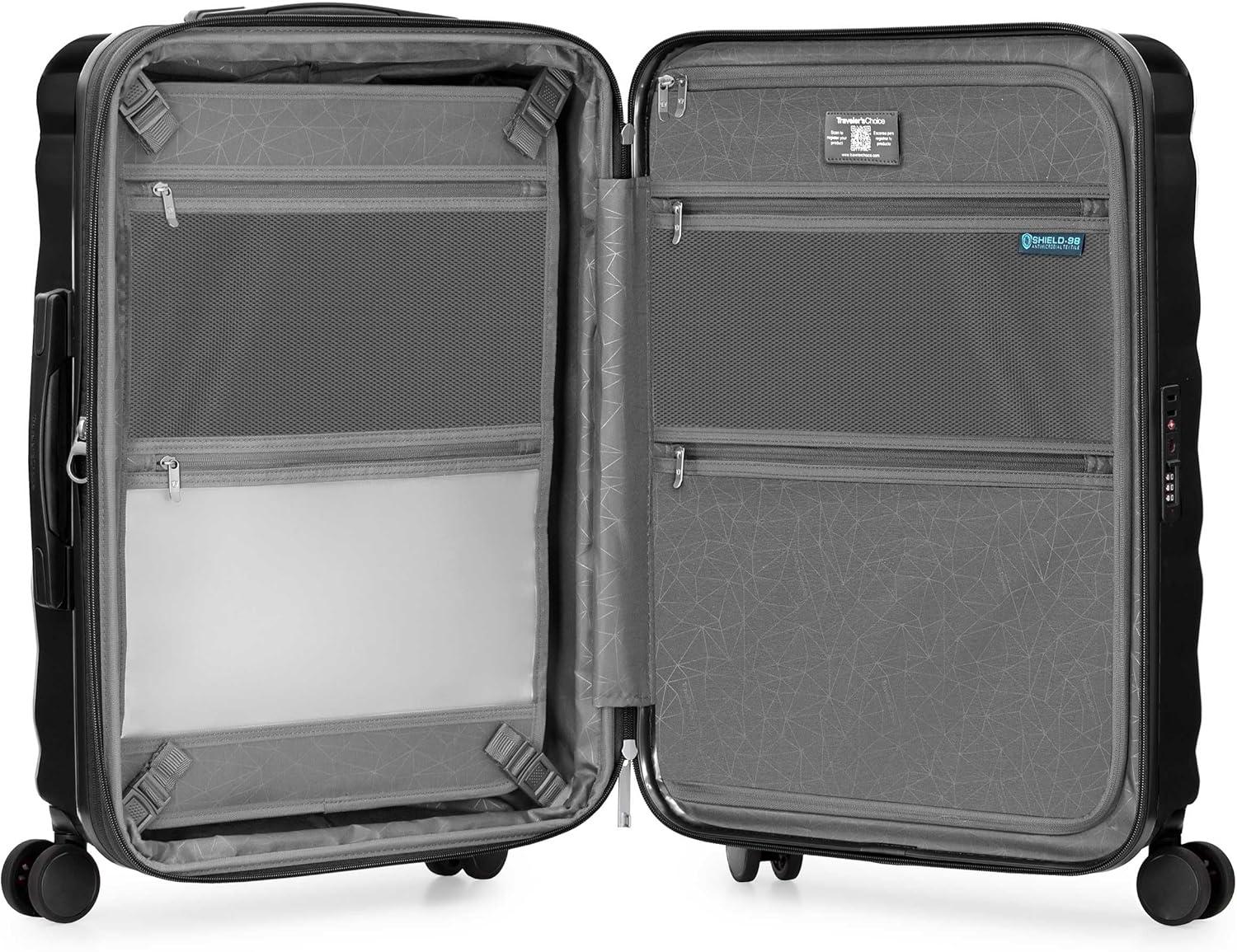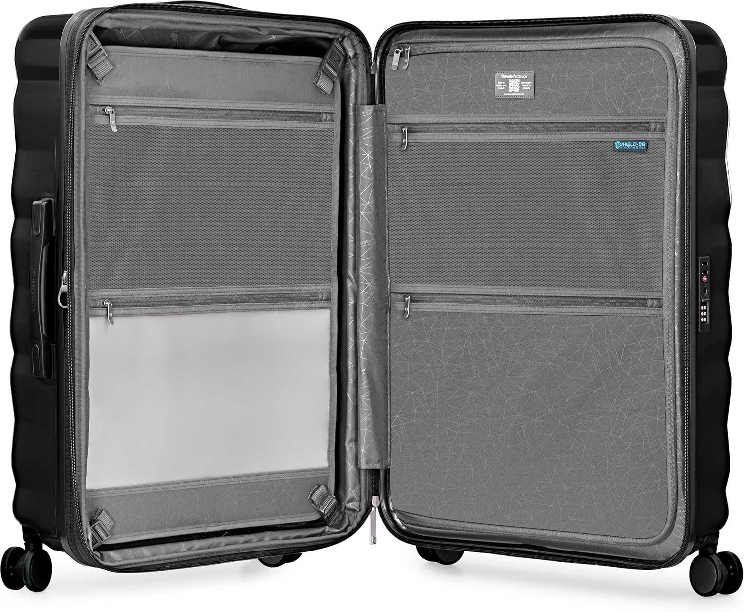 Travel in style with the chic Edinburgh II, designed for travelers who love bold looks and smart functionality. Its vibrant glossy finish pairs with an impact-resistant hard shell and a matching metallic telescopic handle and spinner wheels for a cohesive, eye-catching design. The color-matched interior lining adds a polished touch of elegance inside and out. Spacious and thoughtfully designed, the Edinburgh II makes room for all your travel essentials and last-minute souvenirs. A built-in TSA-approved Travel Sentry® combination lock offers added security while allowing hassle-free inspections. Glide effortlessly through terminals with 360° spinner wheels and an ergonomic telescopic handle for smooth, quiet maneuverability. Top, side, and bottom handle grips offer versatile lifting options, while the fully lined interior includes a zippered divider, removable compression panel, mesh pockets, and tie-down straps for organized packing. Plus, the Shield-98® lining helps keep your luggage clean and fresh throughout your journey. With the Edinburgh II, traveling smart has never looked so stylish.