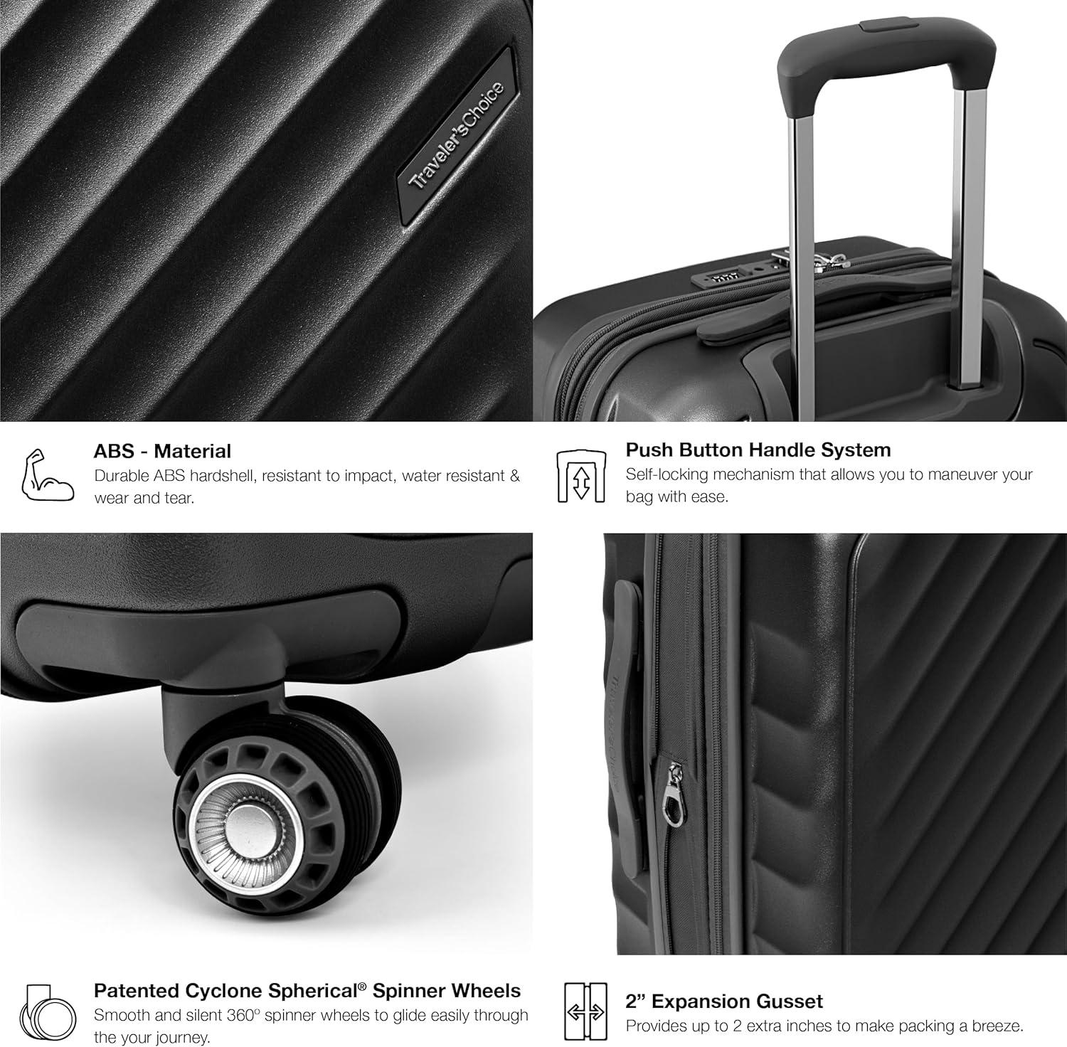 Traveler’s Choice Elm 21″ Carry-on Expandable Spinner Luggage Set – Matte Black