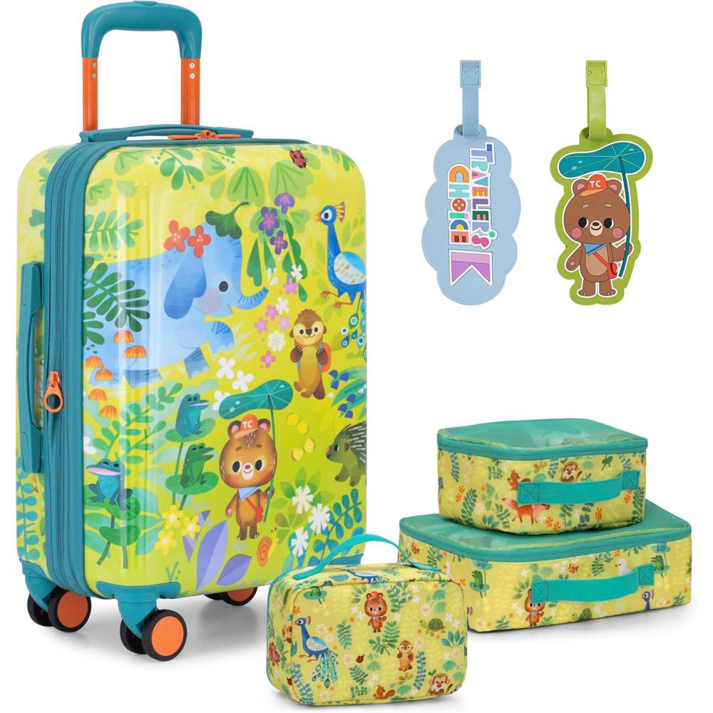 Traveler’s Choice Kids – JoJo the Bear’s Adventure Travel Set – 20-Inch Carry on Hardside Suitcase with Wheels, 3 Packing Cubes, 2 Luggage Tags, Jungle(Jungle)