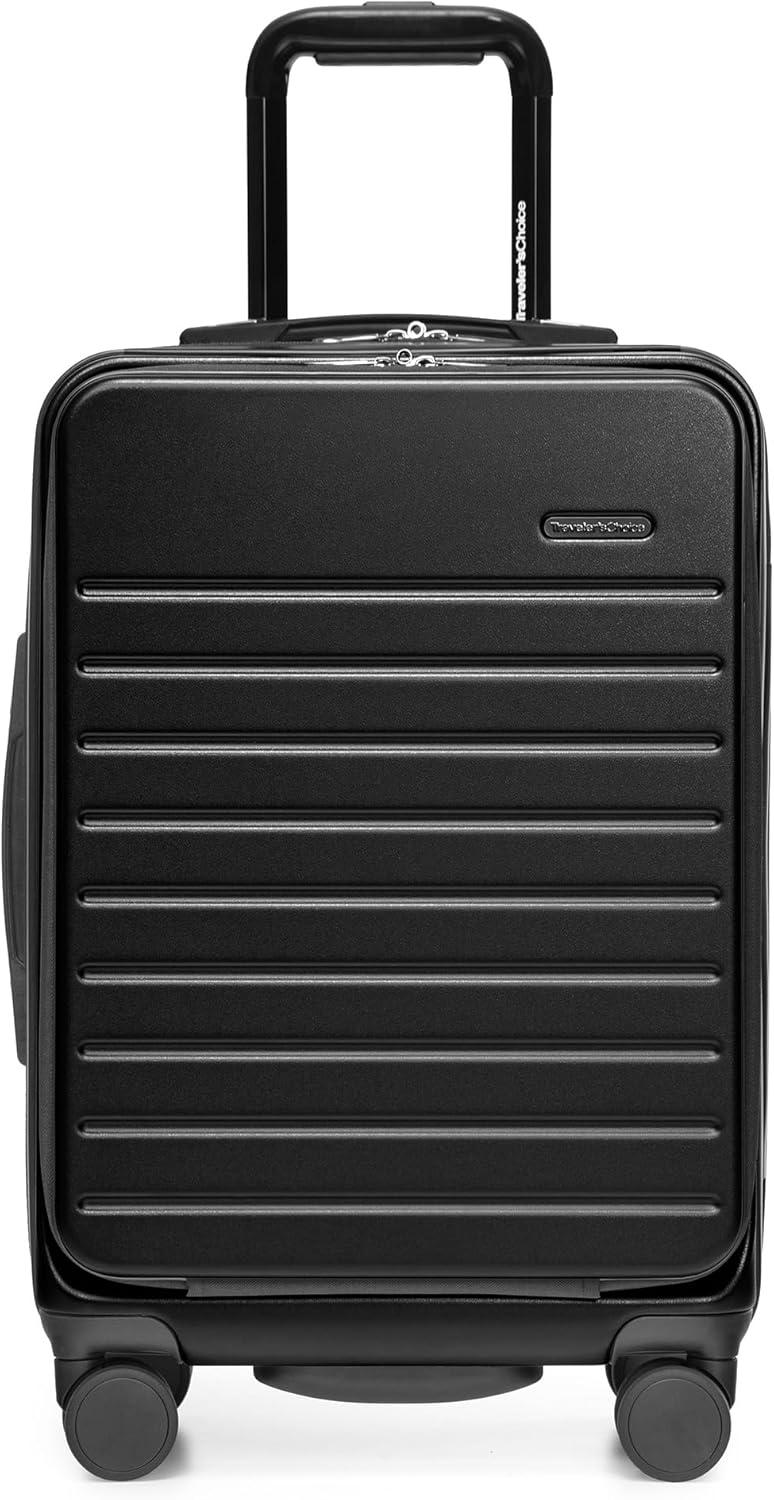 Traveler's Choice Mykel Front Pocket Polycarbonate Hardside Suitcase with Sleeve and Ergonomic Handle, Black, Carry-On 22-Inch(Black)
