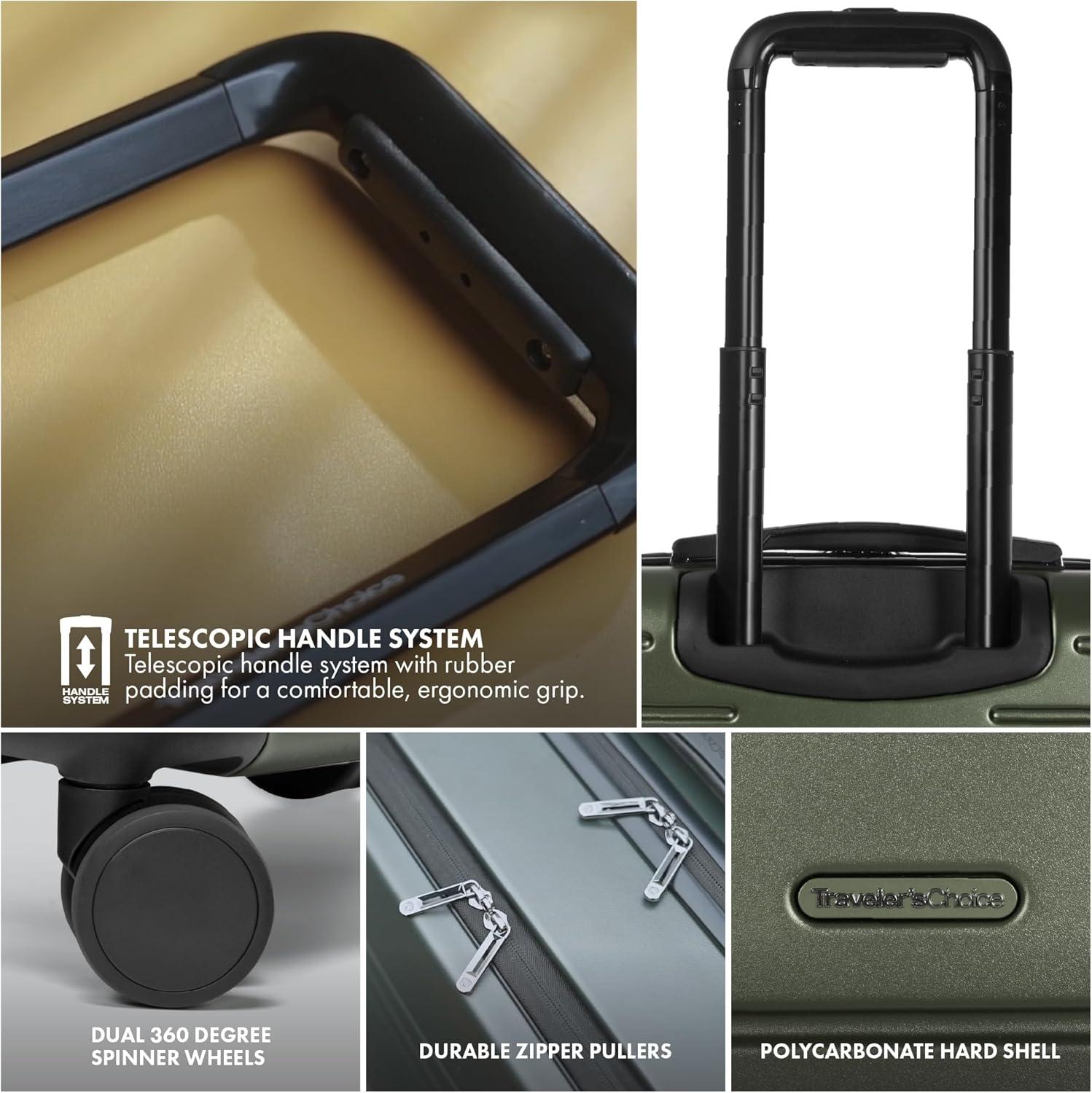 Traveler’s Choice Mykel Front Pocket Polycarbonate Hardside Suitcase with Sleeve and Ergonomic Handle, Black, Carry-On 22-Inch(Green)