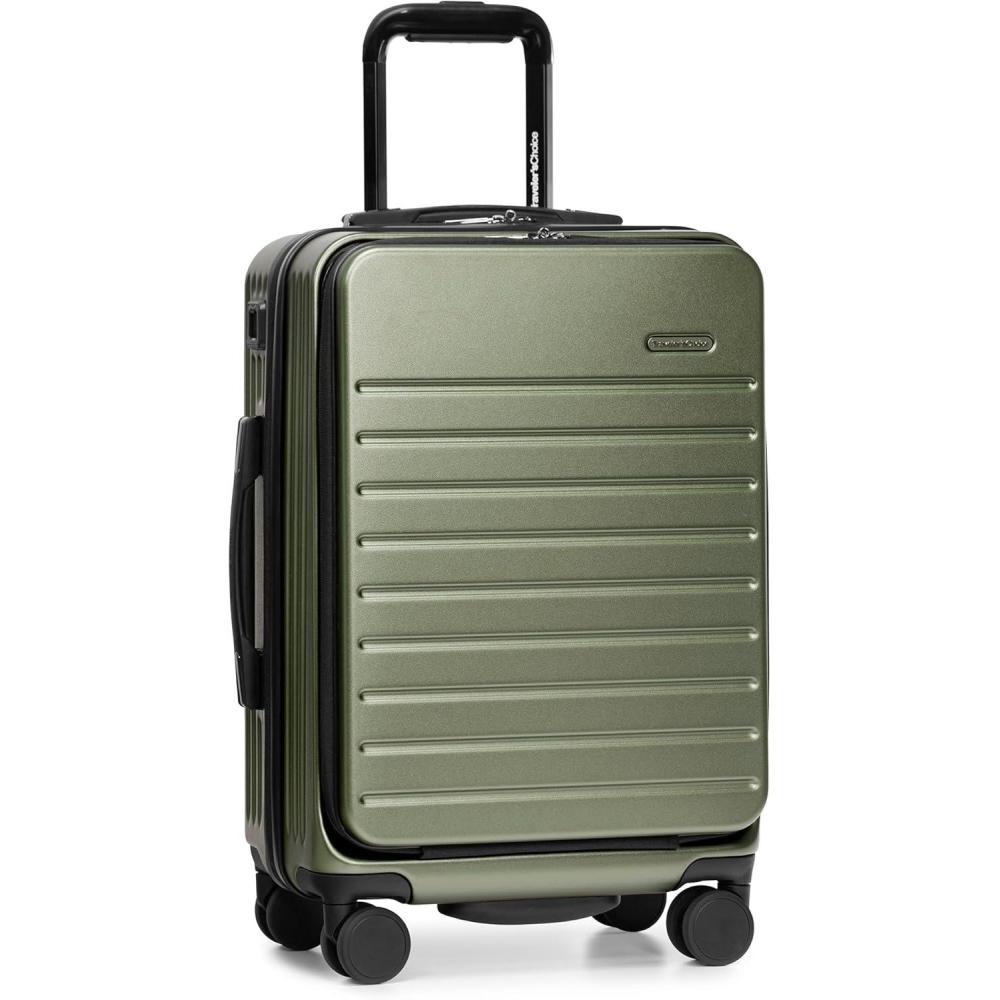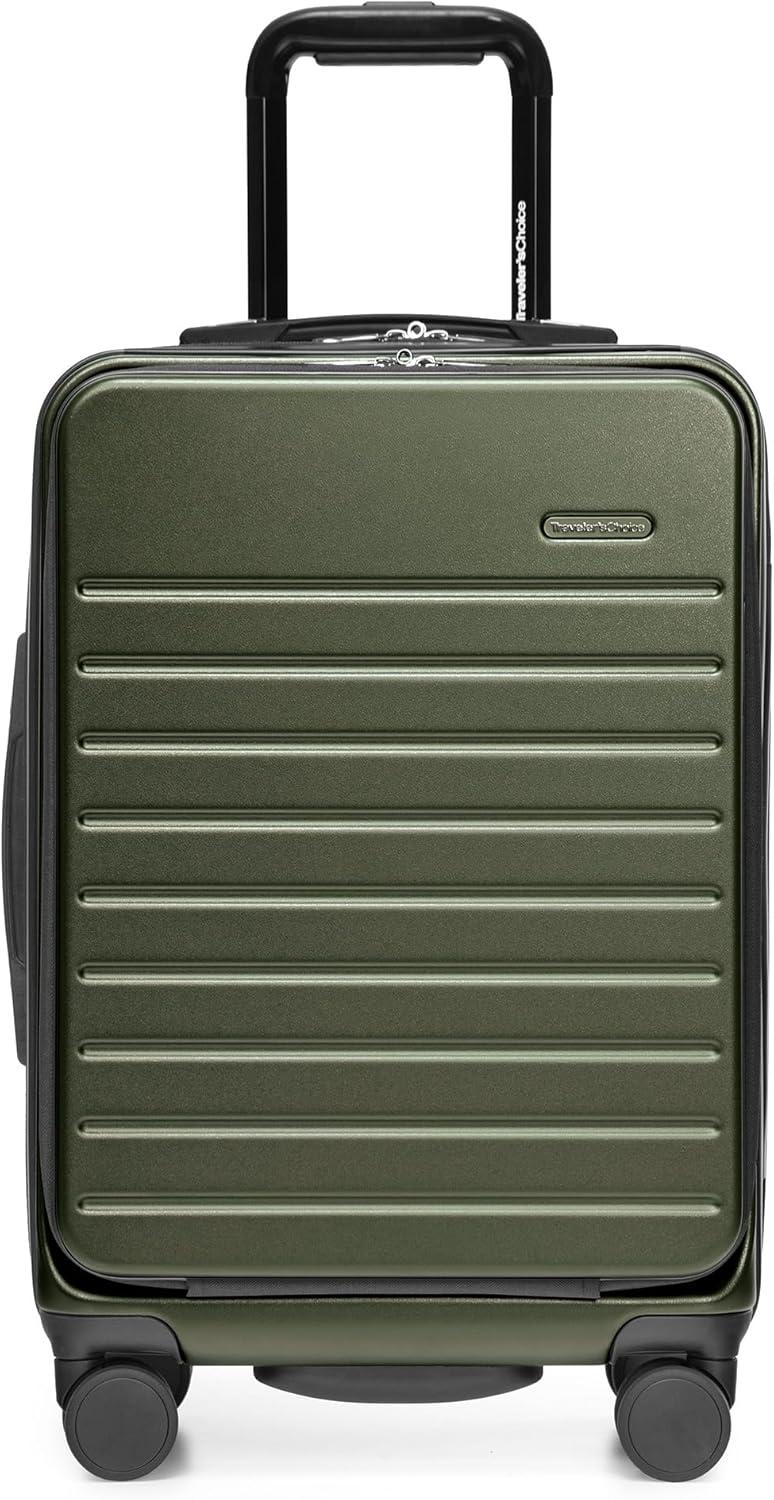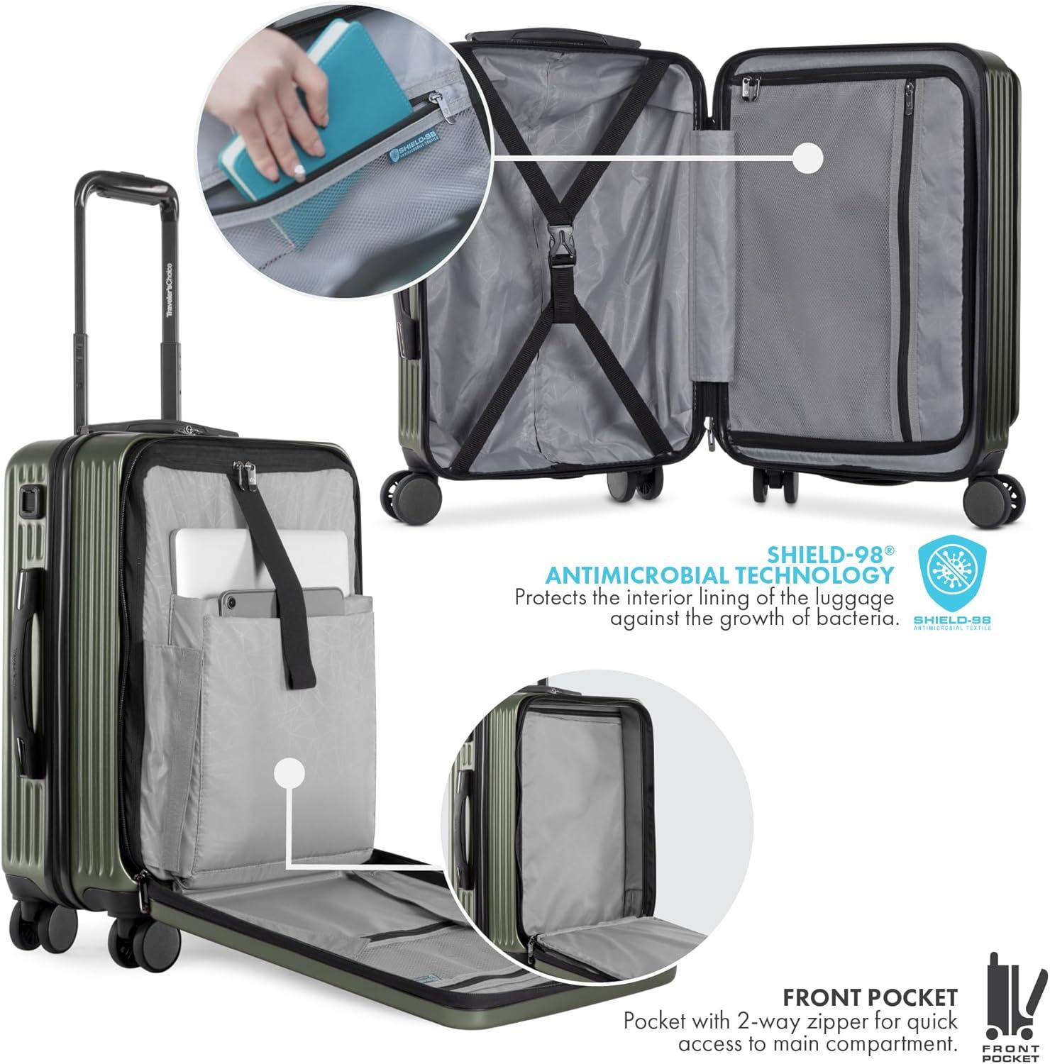 Traveler’s Choice Mykel Front Pocket Polycarbonate Hardside Suitcase with Sleeve and Ergonomic Handle, Black, Carry-On 22-Inch(Green)