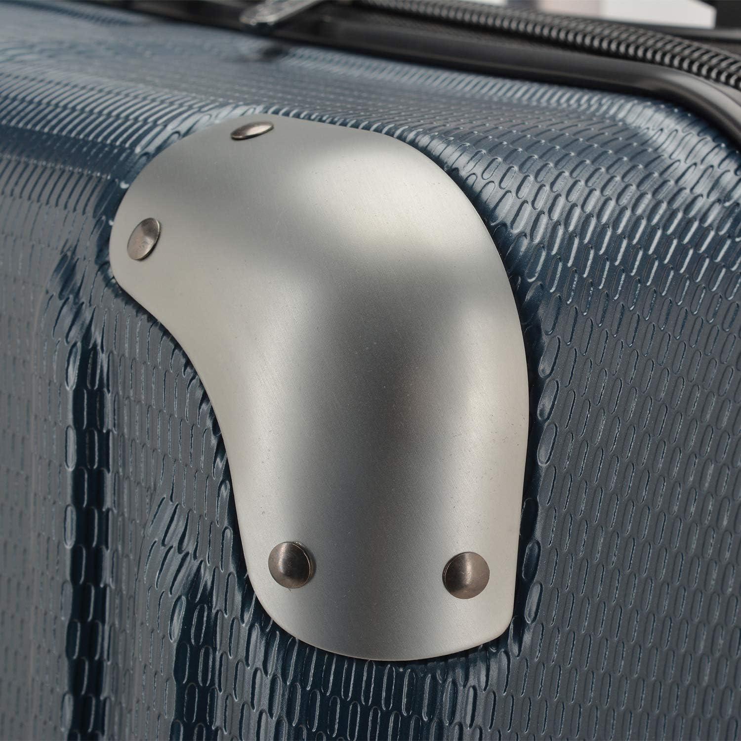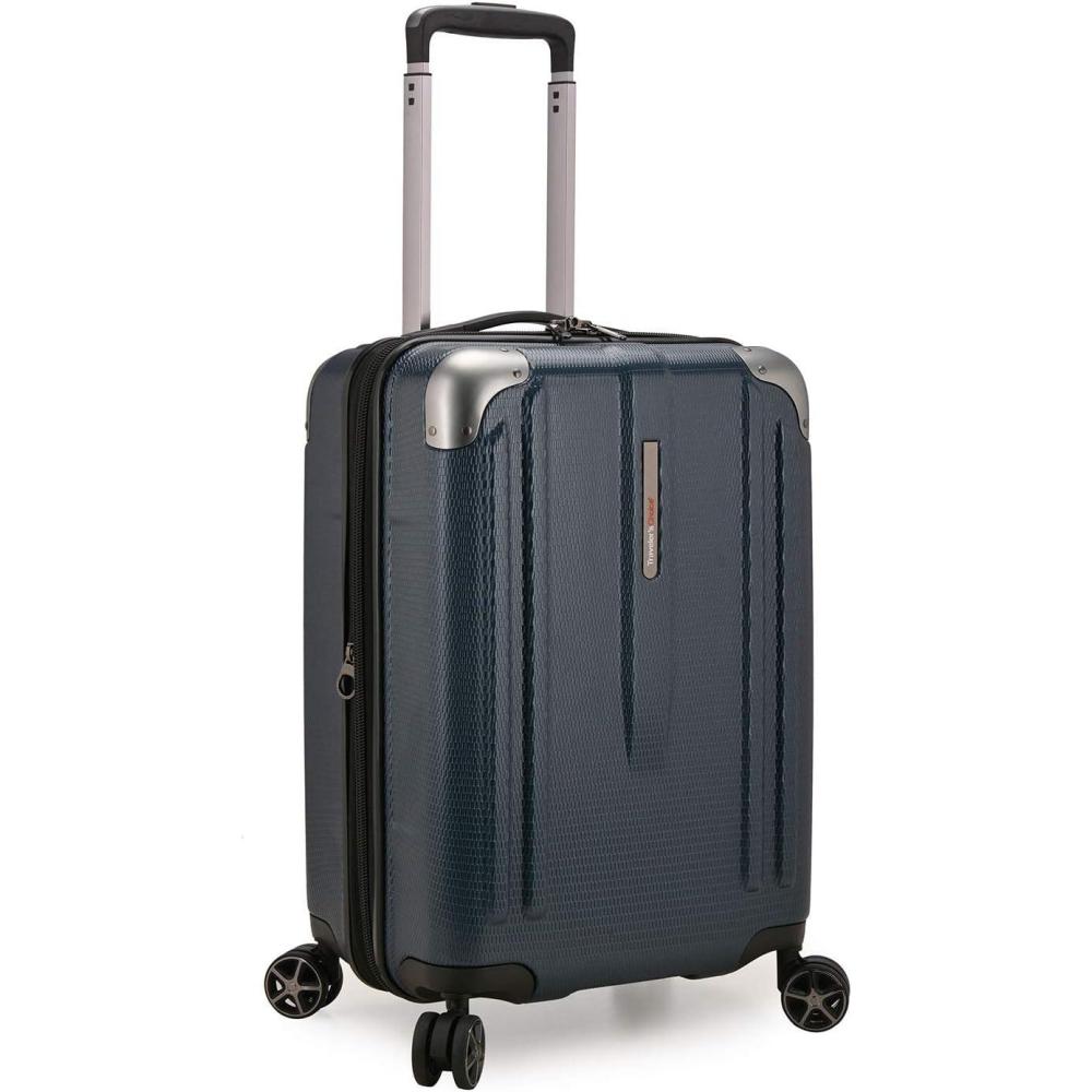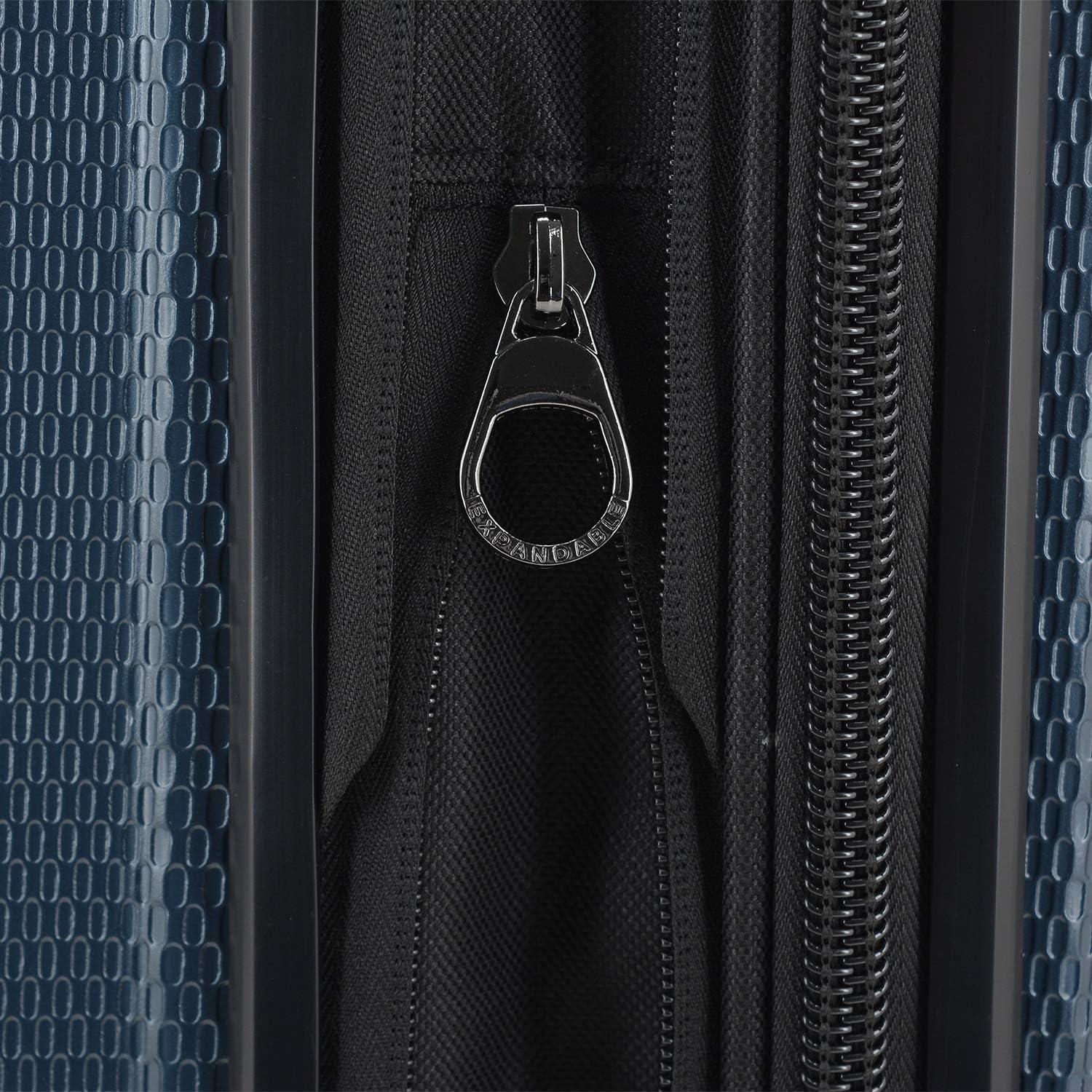 Durable hard-shell construction with riveted corner guards offer great protection. Textured finish prevents abrasive scratches and finger prints. Aluminum telescopic handle system with push-button mechanism provides easy maneuverability. 360-Degree spinner wheel system provides wide wheel base for better traction and stability. 10 Main zipper makes opening and closing a breeze. 2-Inch expansion gusset allows 25 percentage more packing capacity. Main compartment features a claim-shell opening. Interior includes cross-tie straps, zippered divider, and pockets for extra storage. 22” carry-on spinner overall Dimension: 21.5”H x 14”w x 9.5”D + 2” expansion packing capacity: 20”h x 14”w x 9”d + 2” expansion linear inches: 45 weight approx. 7.47 lbs.