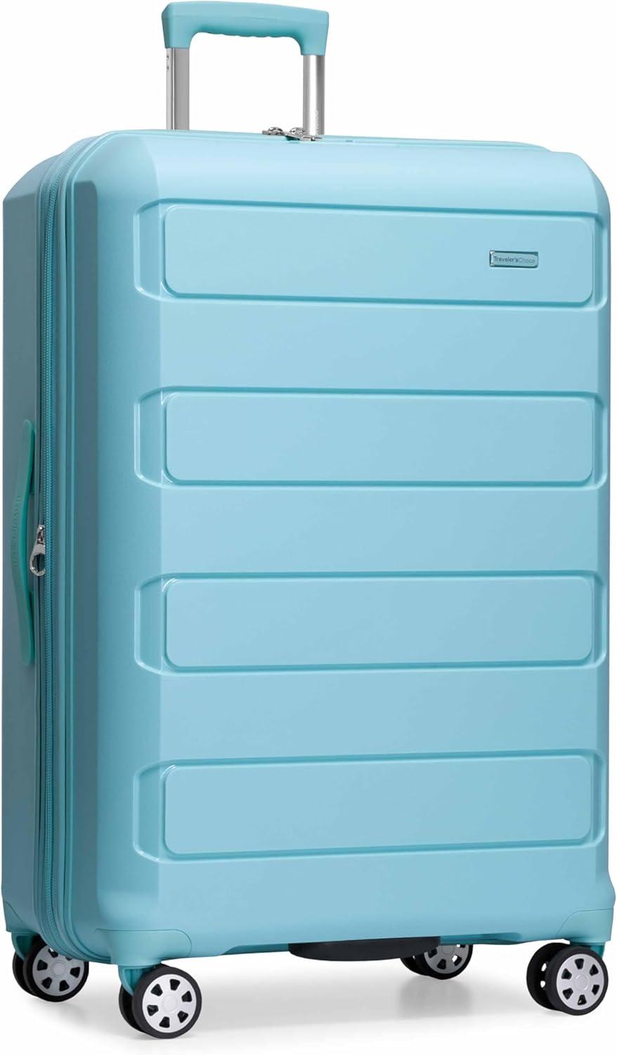 Travel with confidence and durability with the Traveler's Choice Pagosa Luggage. Crafted with a textured polypropylene hardshell, this set is abrasion-, scratch-, and water-resistant—perfect for withstanding the demands of any journey. The 360° spinner wheels ensure smooth and effortless mobility through crowded terminals, while the multi-stage telescoping handle with a push-button lock allows for easy height adjustment and maneuverability. Conveniently charge while you're on the go with an iTravel charging port (carry-on only, powerbank not included). Each piece includes an expansion gusset that offers up to 2 inches of additional packing capacity. Top and side rubber carry handles make lifting a breeze. Inside, you'll find a spacious main compartment with multiple zippered pockets and interior compression straps to keep belongings neatly secured. Finished with durable self-mending #10 zippers, the Pagosa set is designed to last, trip after trip.