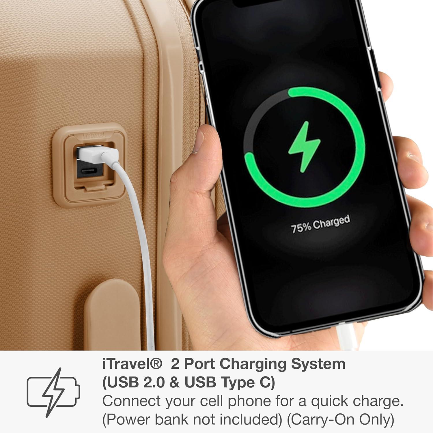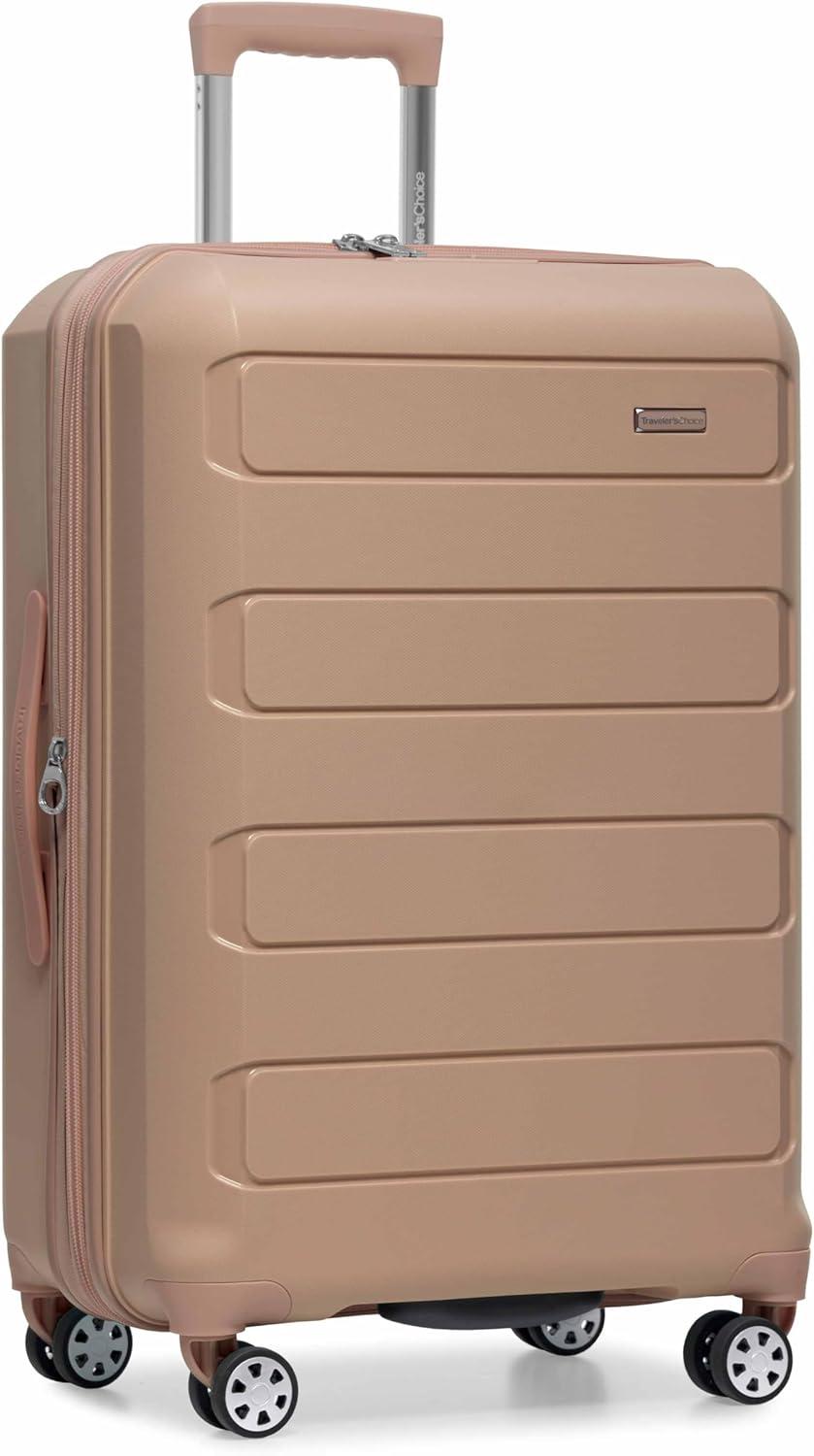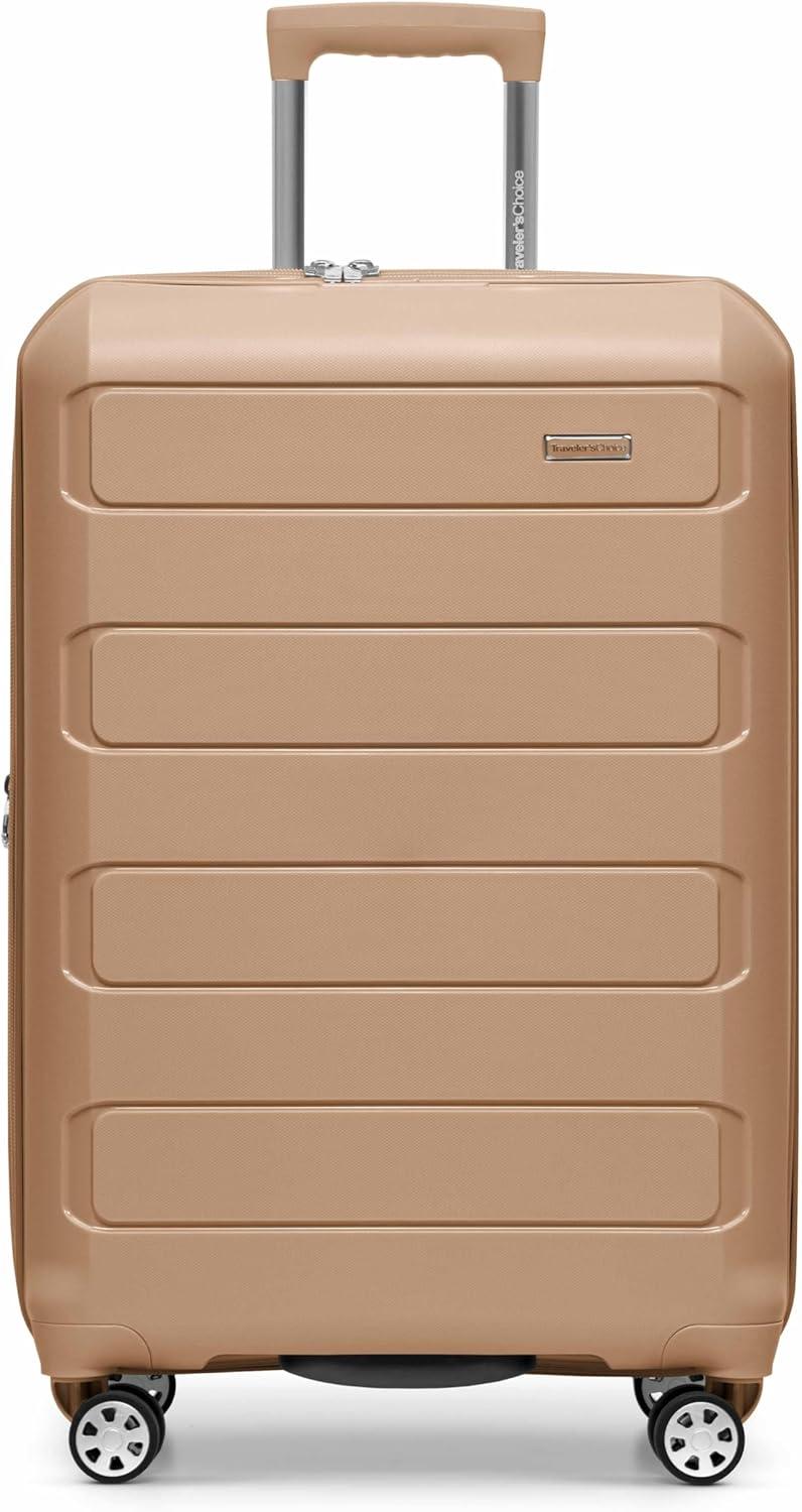 Travel with confidence and durability with the Traveler's Choice Pagosa Luggage. Crafted with a textured polypropylene hardshell, this set is abrasion-, scratch-, and water-resistant—perfect for withstanding the demands of any journey. The 360° spinner wheels ensure smooth and effortless mobility through crowded terminals, while the multi-stage telescoping handle with a push-button lock allows for easy height adjustment and maneuverability. Conveniently charge while you're on the go with an iTravel charging port (carry-on only, powerbank not included). Each piece includes an expansion gusset that offers up to 2 inches of additional packing capacity. Top and side rubber carry handles make lifting a breeze. Inside, you'll find a spacious main compartment with multiple zippered pockets and interior compression straps to keep belongings neatly secured. Finished with durable self-mending #10 zippers, the Pagosa set is designed to last, trip after trip.