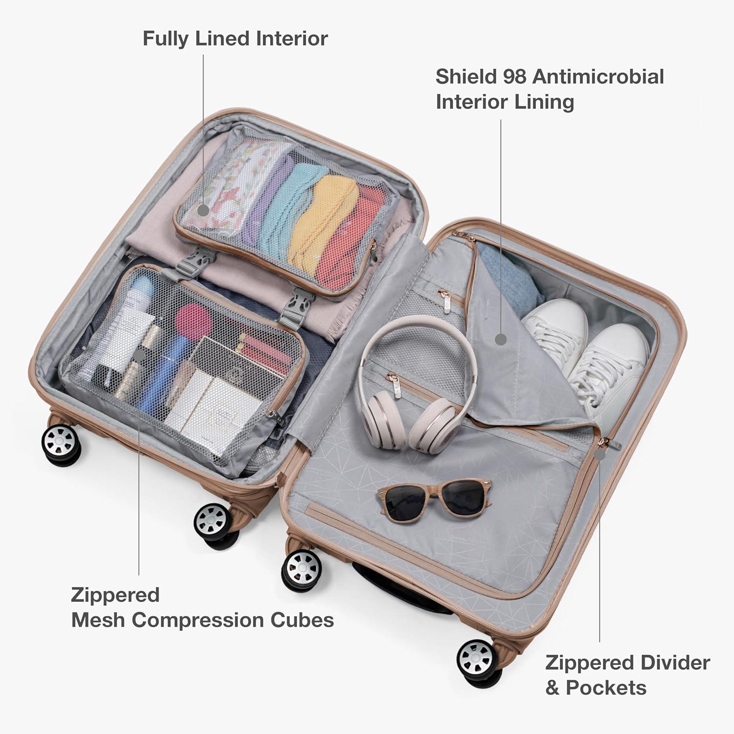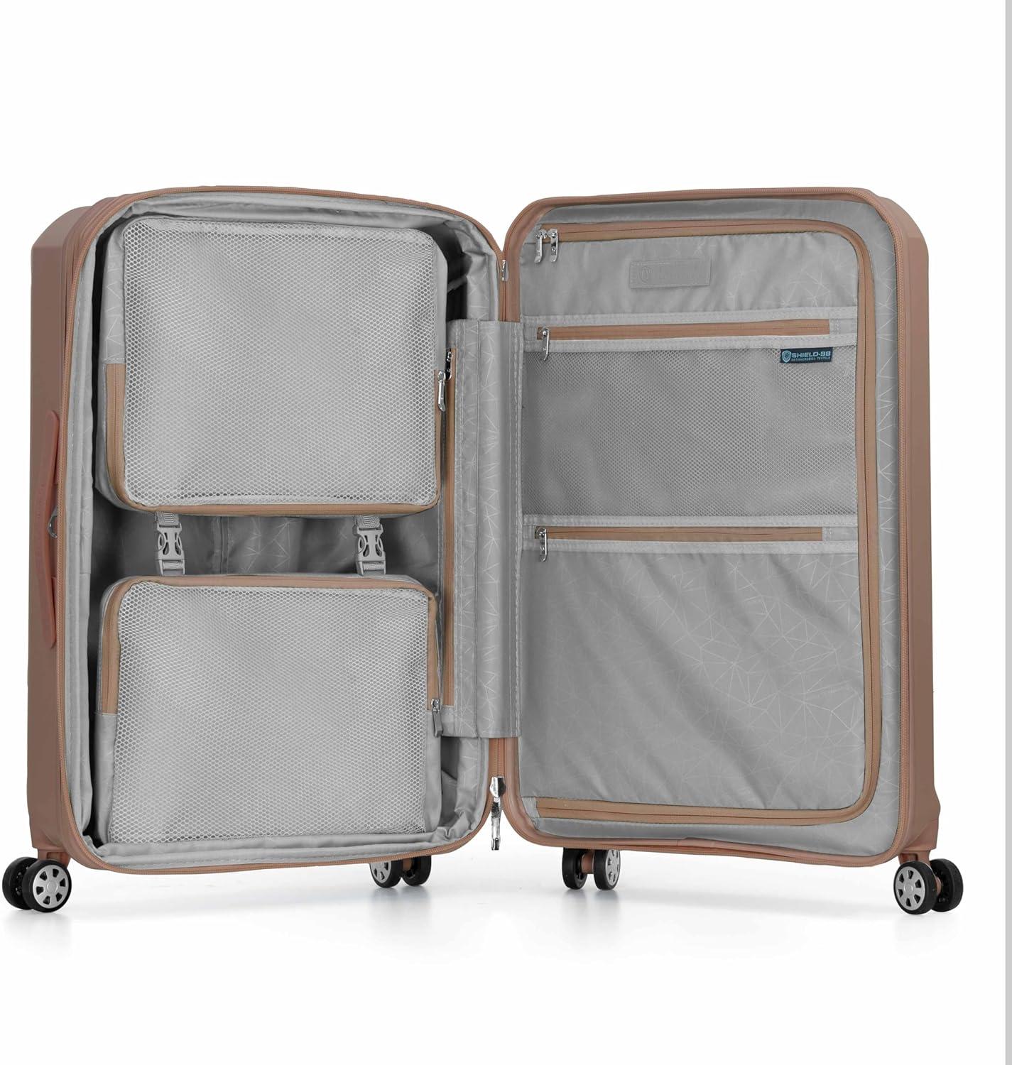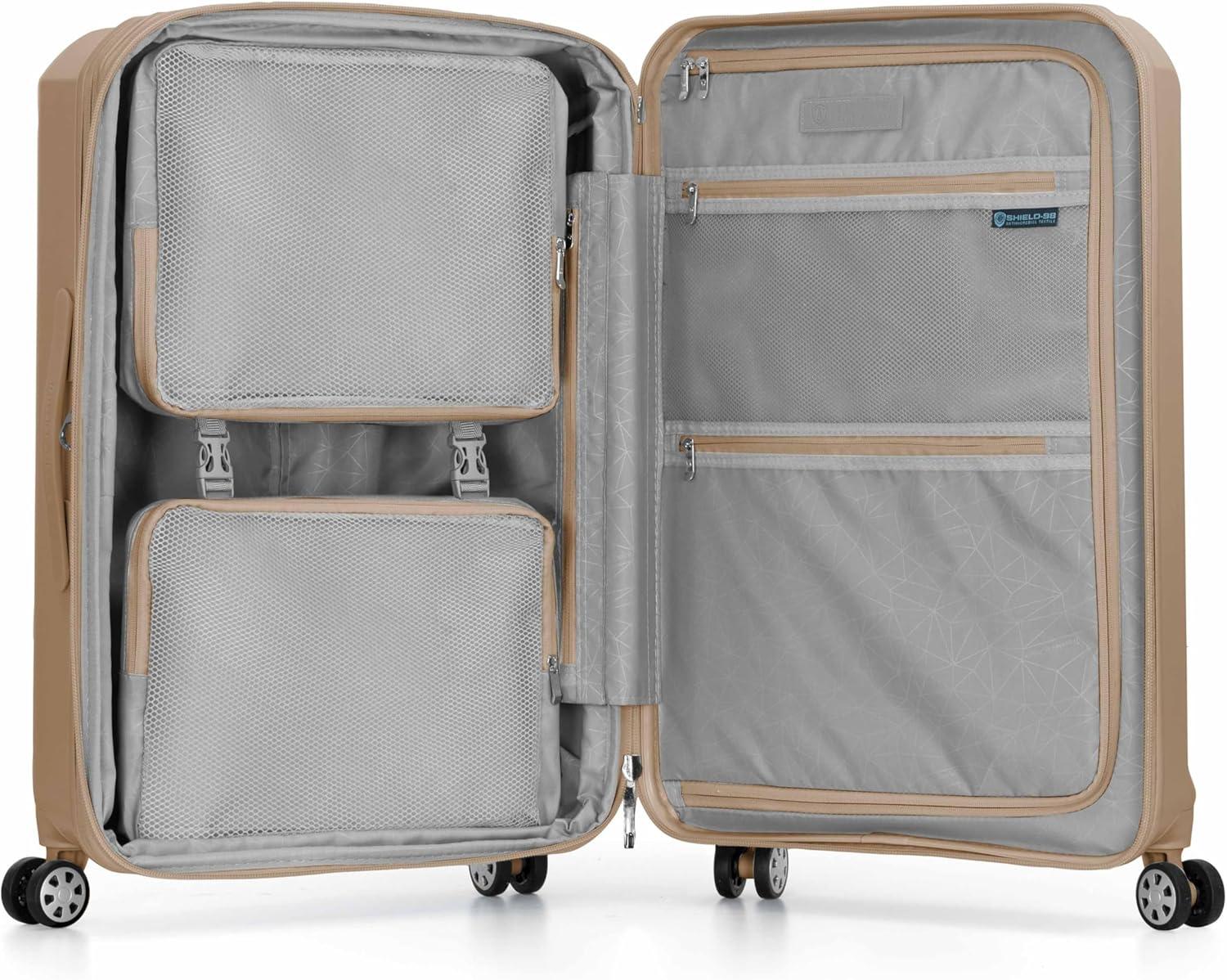 Travel with confidence and durability with the Traveler's Choice Pagosa Luggage. Crafted with a textured polypropylene hardshell, this set is abrasion-, scratch-, and water-resistant—perfect for withstanding the demands of any journey. The 360° spinner wheels ensure smooth and effortless mobility through crowded terminals, while the multi-stage telescoping handle with a push-button lock allows for easy height adjustment and maneuverability. Conveniently charge while you're on the go with an iTravel charging port (carry-on only, powerbank not included). Each piece includes an expansion gusset that offers up to 2 inches of additional packing capacity. Top and side rubber carry handles make lifting a breeze. Inside, you'll find a spacious main compartment with multiple zippered pockets and interior compression straps to keep belongings neatly secured. Finished with durable self-mending #10 zippers, the Pagosa set is designed to last, trip after trip.