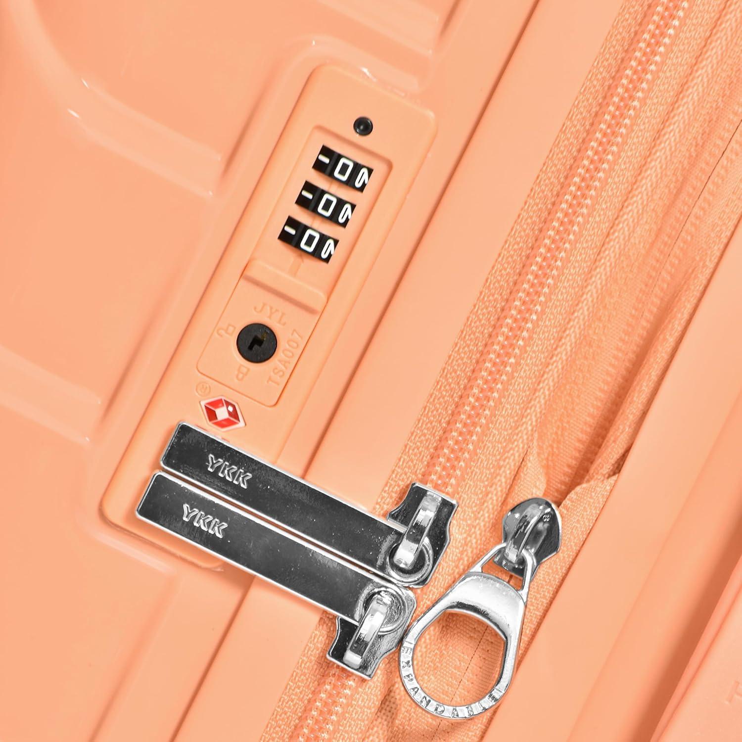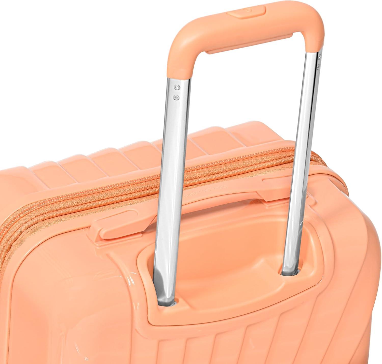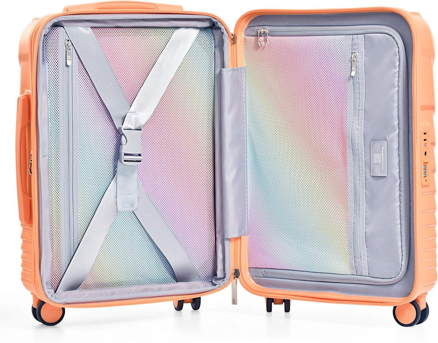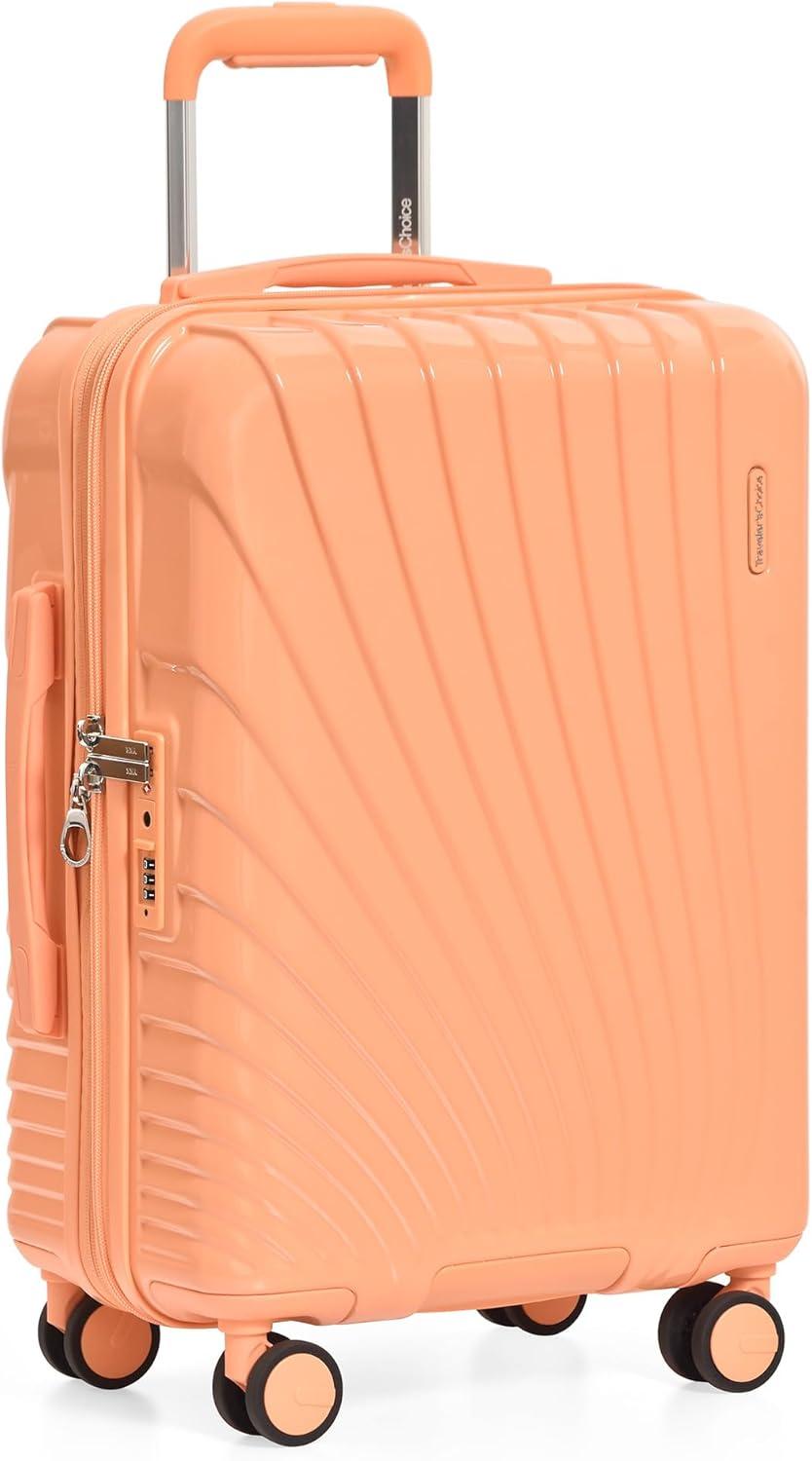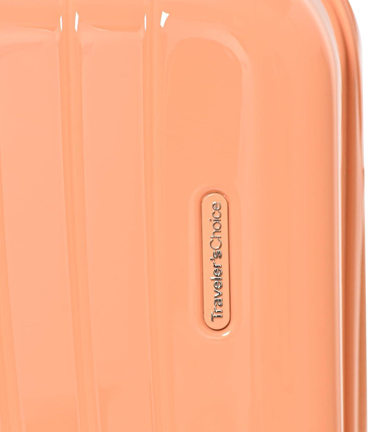 Traveler's Choice Phenom Luggage Collection is uniquely designed with a exclusive pleated surface with a gorgeous glossy finish that catches the eye, to inspire every journey, for every traveler. This modern set maintains durability packed with practical features with best-in-class Hinomoto® Lisoff® Silent Run wheels that will glides smoothly on any terrain. Navigate between tight spaces equipped with a ergonomic telescopic handle system with a comfortable gel grip. Easily secure your belongings on the main compartment with industry leading YKK® puncture resistant zipper. A built-in TSA-approved combination lock allows TSA agents to safely inspect your luggage and provides additional peace of mind. Made with multiple touch points from the top, side, and bottom for easy lifting. The interior features a magical iridescent trim with a removable compression divider, tie down straps, and zippered mesh pockets, adding a touch of playful yet sophisticated flair for your travel gear, in making every journey feel magical.