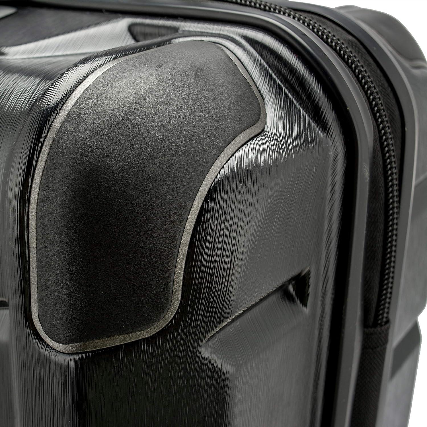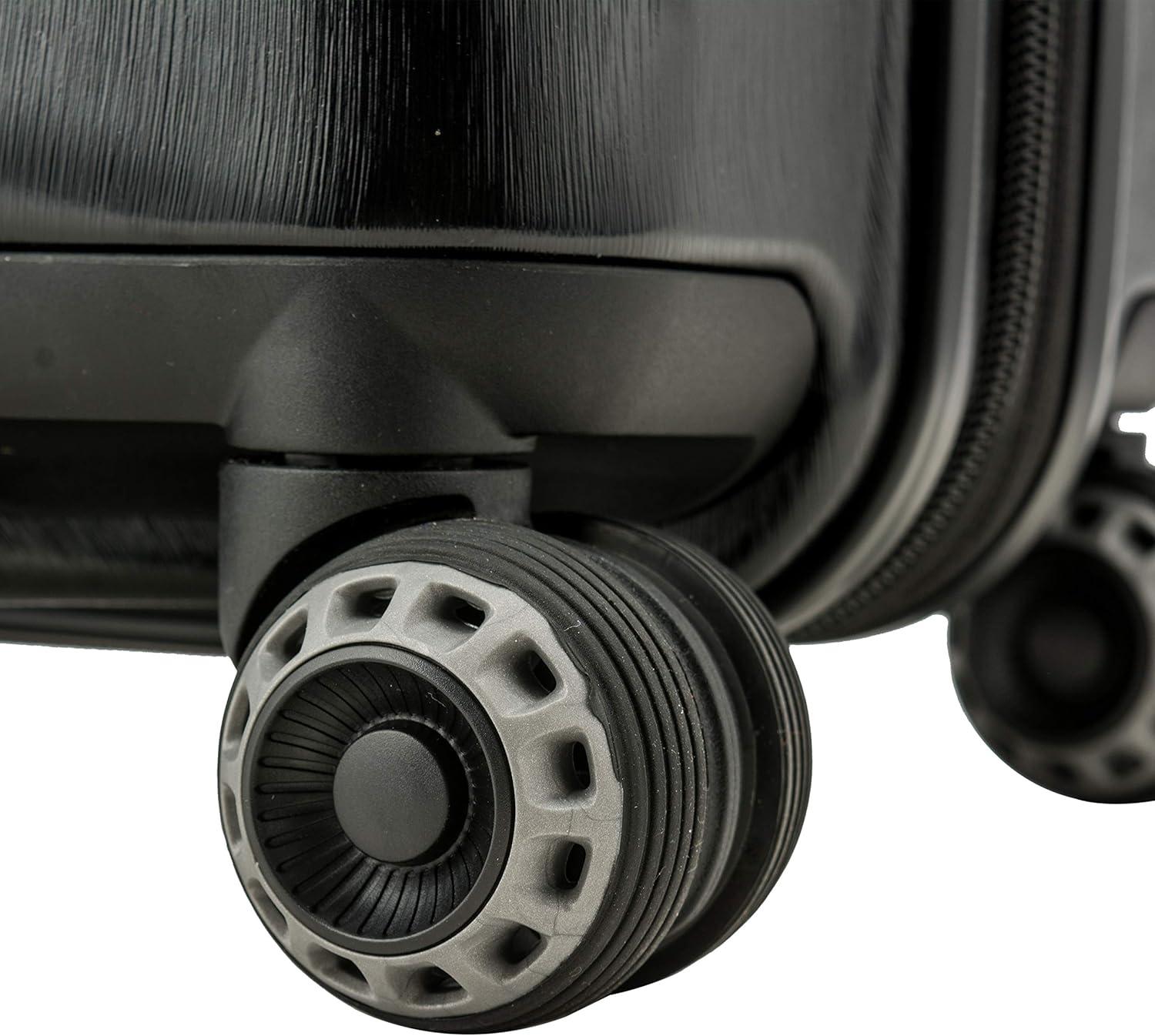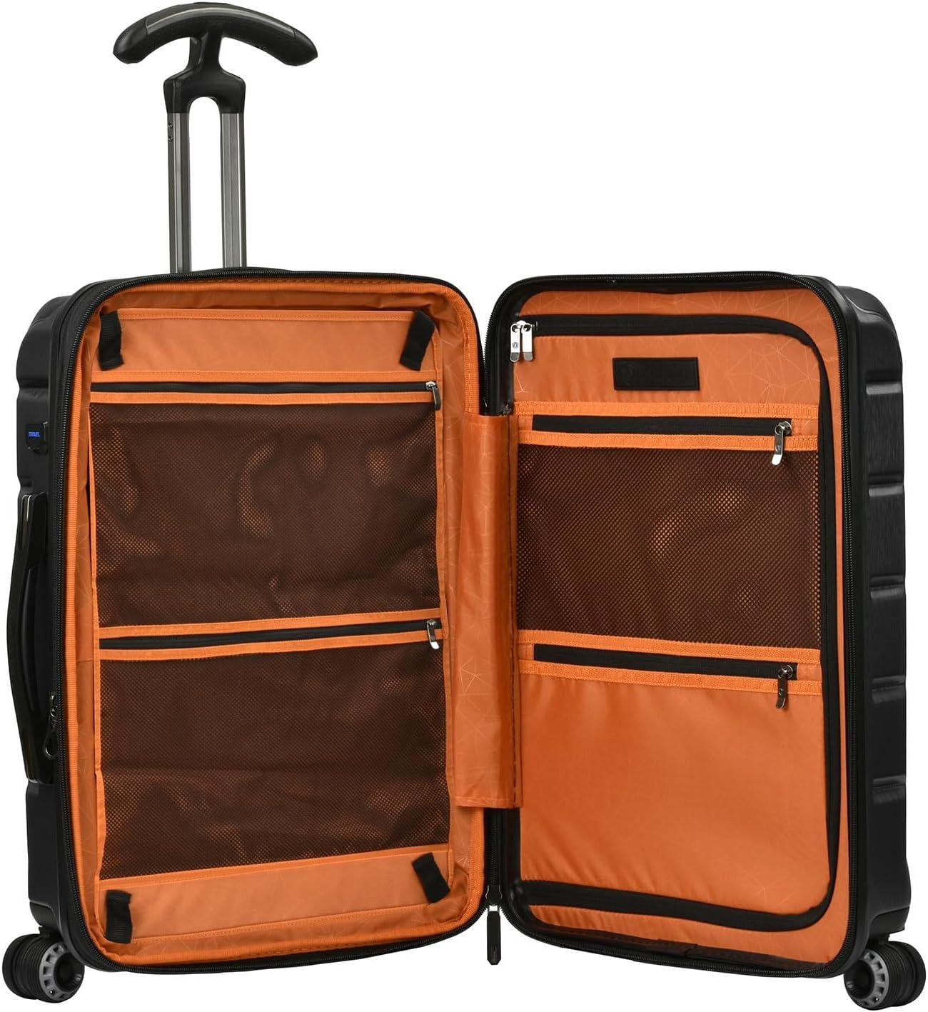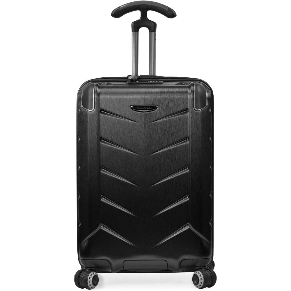 Made of 100% polycarbonate hard-shell, which is the most durable material for hardside luggage. Unique diamond-cut texture finish prevents abrasive scratches and finger prints. Patent-pending T-Cruiser handle system allows you to maneuver your bag with ease. The downward curve of the handle fits the natural position of your hand, thereby minimizing discomfort or fatigue. The double tubes of the handle system maximize the interior space for packing and still allow for a 2nd bag to be carried on top. The push-button mechanism and multi-stage locking feature allows you to adjust the height of the handle to maximize comfort. Patented Dual Cyclone Spherical spinner wheel system provides wide wheel bases for better traction and stability. Each wheel features a 5mm shock-resistant material that assures smooth maneuverability and quiet rolling experience. Each half of the Dual Cyclone wheel can move independently in the same or opposite direction, allowing you to roll or spin your suitcase effortlessly over uneven and smooth surfaces. The four multi-directional Dual Cyclone wheels allow the suitcase to roll upright, so there’s no weight on your arm or shoulder. Expansion gusset boosts extra packing capacity by 25%. Top, side and bottom carry handles for easy lifting. Riveted corner guards enhance overall durability. Imprinted fully-lined interior with two center dividers. Built-in TSA-approved combination lock offers extra security. 21” carry-on spinner features a built-in USB port and interior power bank compartment that provide quick connection to your portable electronic device for a quick charge. Power bank compartment measures 9”W x 4”L x 1”D. (Power bank not provided) Industry-leading Traveler’s Choice quality is backed by a 10-year manufacturer’s warranty. 21” SPINNER UPRIGHT Exterior Dimensions: 21”H x 14”W x 9.5” (+2”) D (8.2lbs) Interior Dimensions: 19.75”H x 13.75”W x 9.25” (+2”)