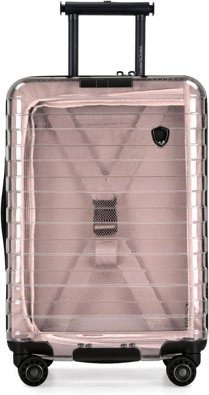 Traveler’s Choice Transparent Hardside Spinner Luggage, Translucent, Carry-On 22-Inch(Pink)
