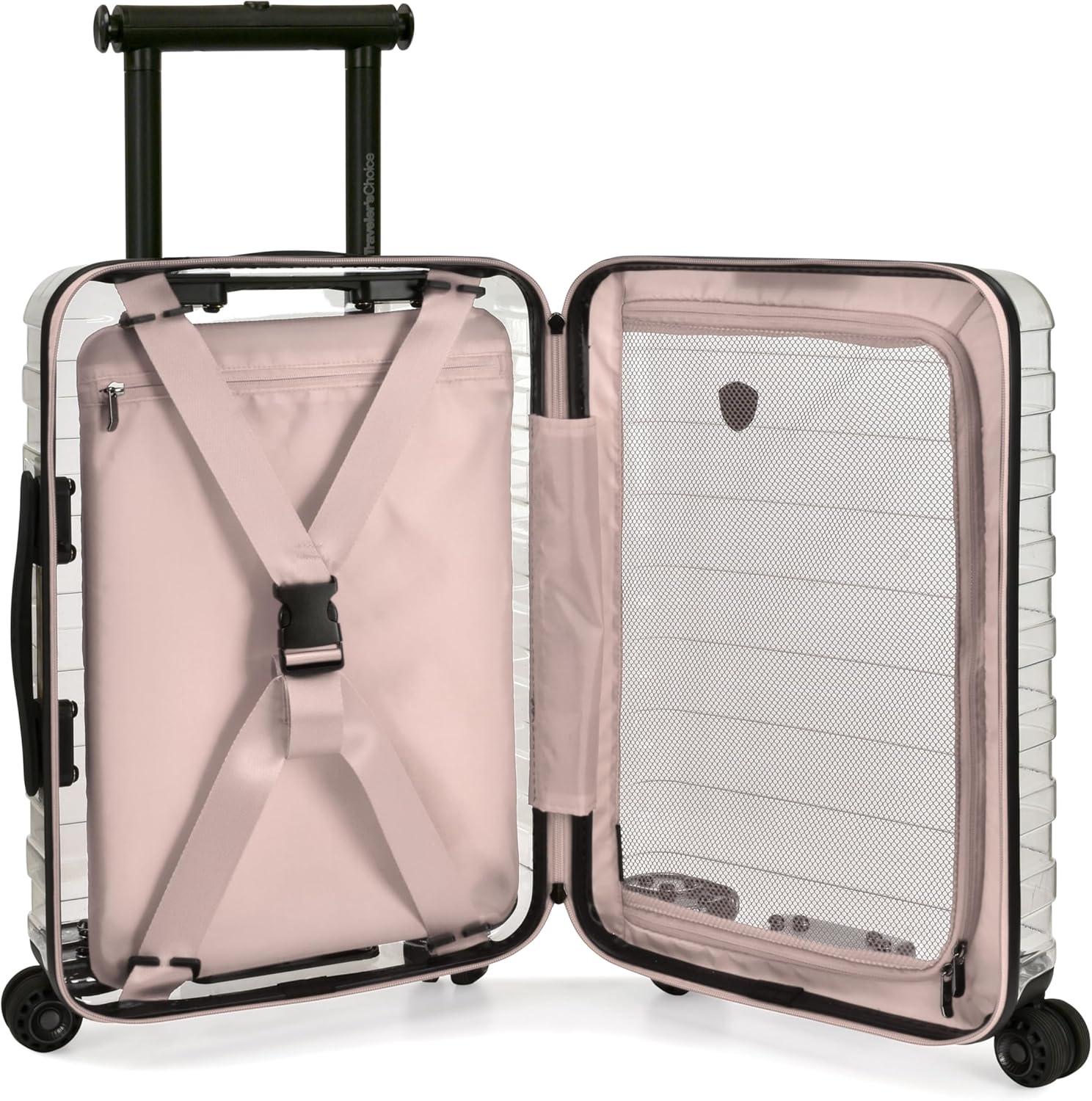 imageTravelers Choice Transparent Hardside Spinner Luggage Translucent CarryOn 22InchPink