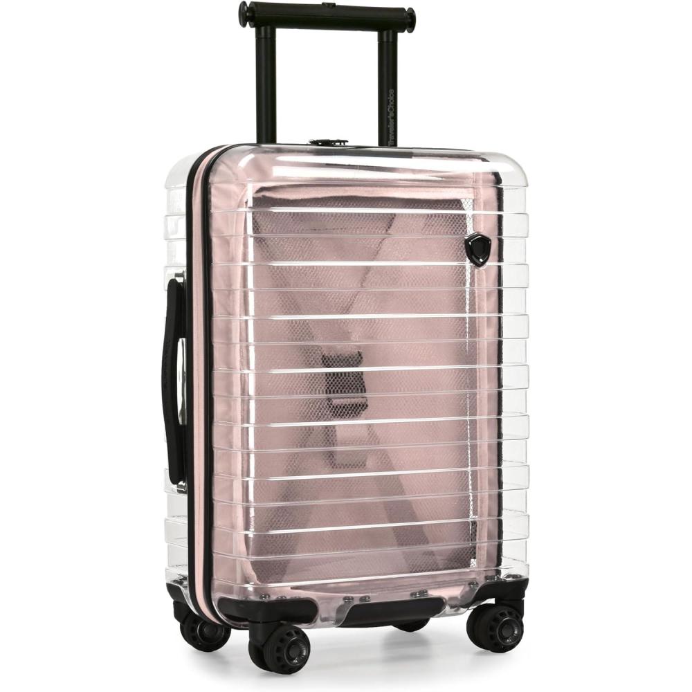 Traveler's Choice Transparent Hardside Spinner Luggage, Translucent, Carry-On 22-Inch(Pink)