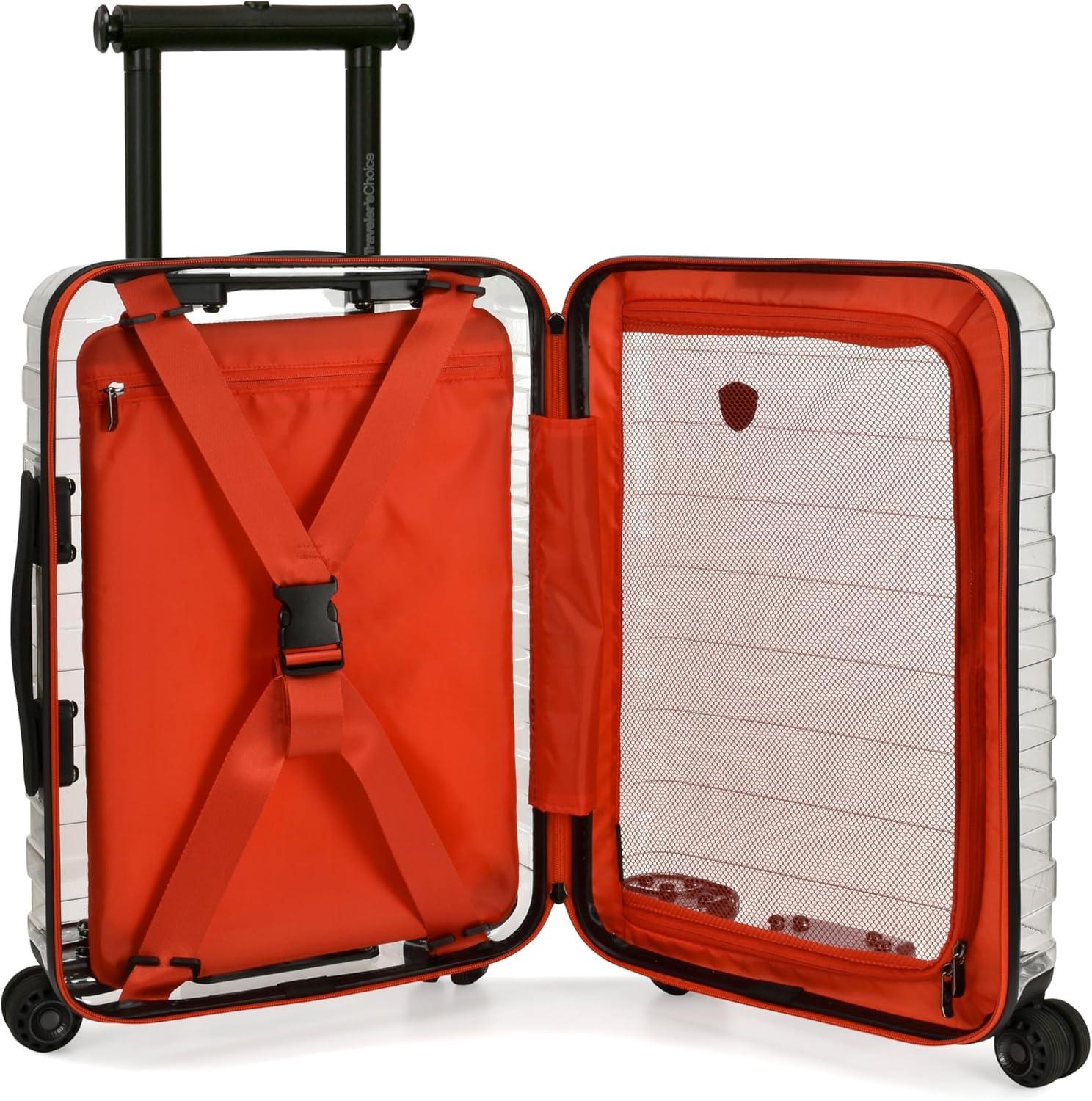 Traveler’s Choice Transparent Hardside Spinner Luggage, Translucent, Carry-On 22-Inch(Red)