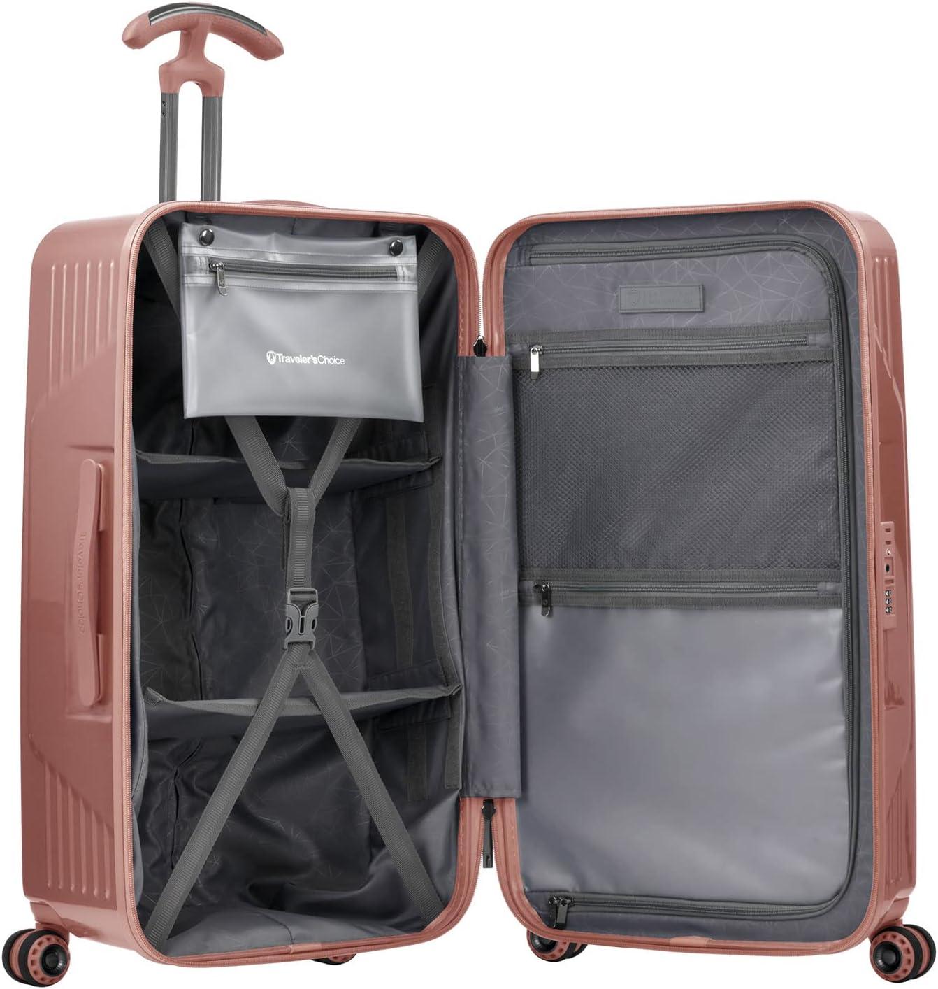Engineered for performance and crafted with style, the Traveler's Choice Ultimax II Luggage Collection is a 2017 RedDot Product Design Award winner and a customer favorite. Inspired by the acclaimed Prokas Ultimax series and elevated with design elements from the MaxPorter II, Ultimax II blends innovation, durability, and sophistication—making it a go-to for modern travelers. Constructed with 100% polycarbonate, the hard shell offers exceptional impact resistance and long-lasting durability. The interior is protected by Shield-98™ technology, safeguarding your belongings from external elements. Security and functionality come standard with a TSA-approved built-in combination lock, a heavy-duty YKK® RCW double-coil zipper that’s puncture-resistant, and a bottom grip handle for easy lifting. Enjoy effortless mobility with the patented T-Cruiser Handle System, ergonomically designed with a downward curve to reduce hand fatigue. The dual cyclone spherical spinner wheels provide excellent stability, smooth rolling, and quiet maneuverability—thanks to wide wheel bases and 5mm shock-absorbent materials. The fully-lined interior is thoughtfully designed with adjustable shelf dividers, a detachable waterproof pouch, and ample packing space, all protected with a recessed wheel system to maximize interior capacity. Each Ultimax II also includes a clear luggage cover to keep your suitcase clean and scratch-free while in transit.
