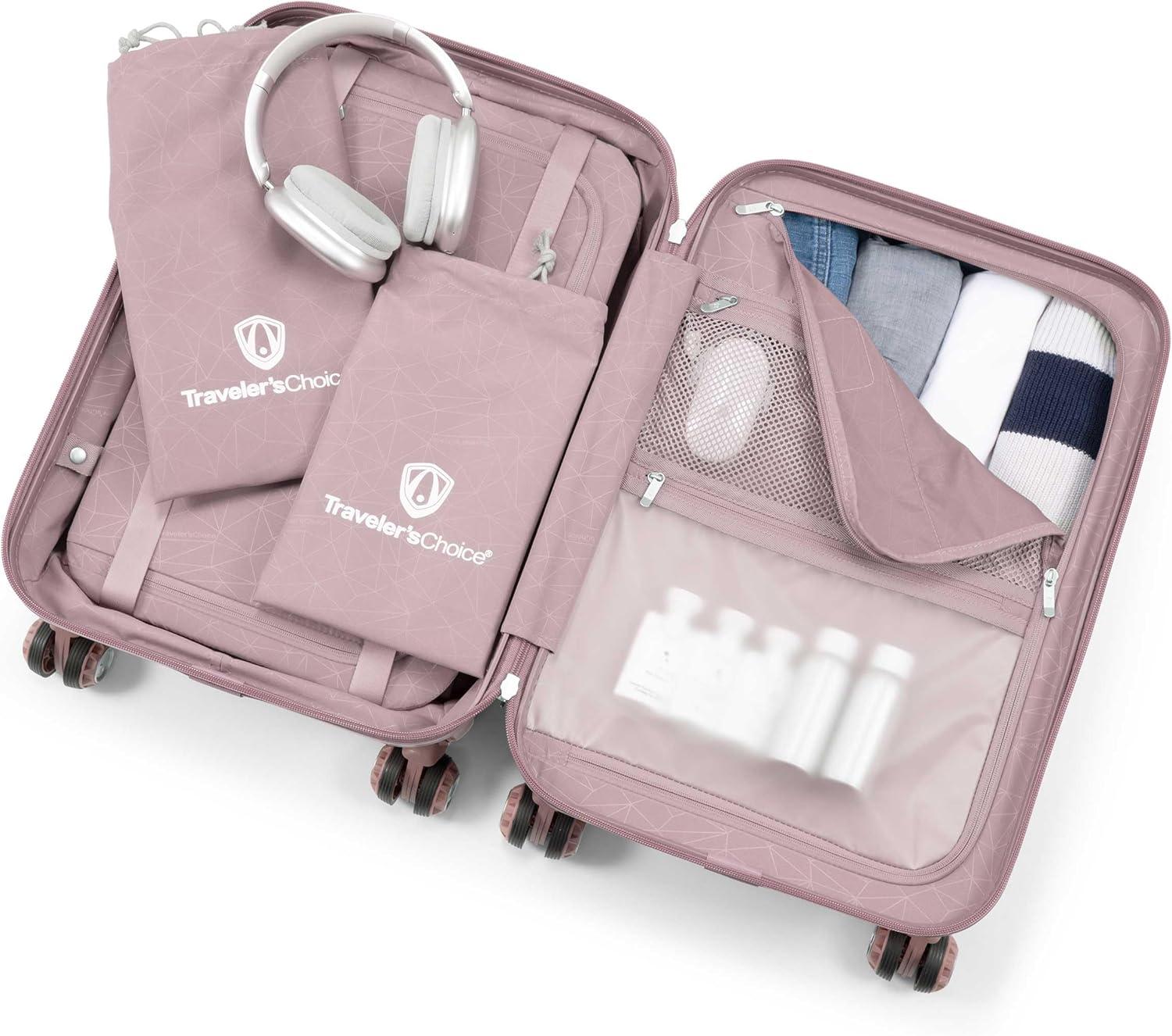 Traveler’s Choice Ultimax Polycarbonate Hardside Trunk, Spinner Wheels, TSA Lock, Rose Pink, 21-Inch Carry-on Luggage(Rose Pink)