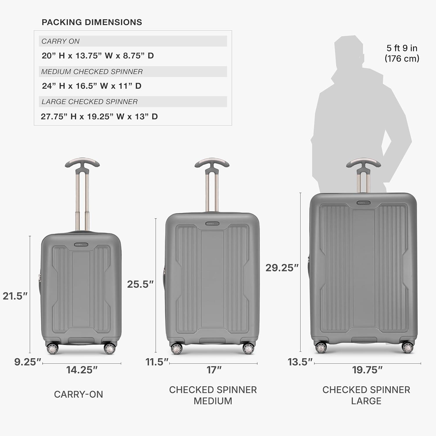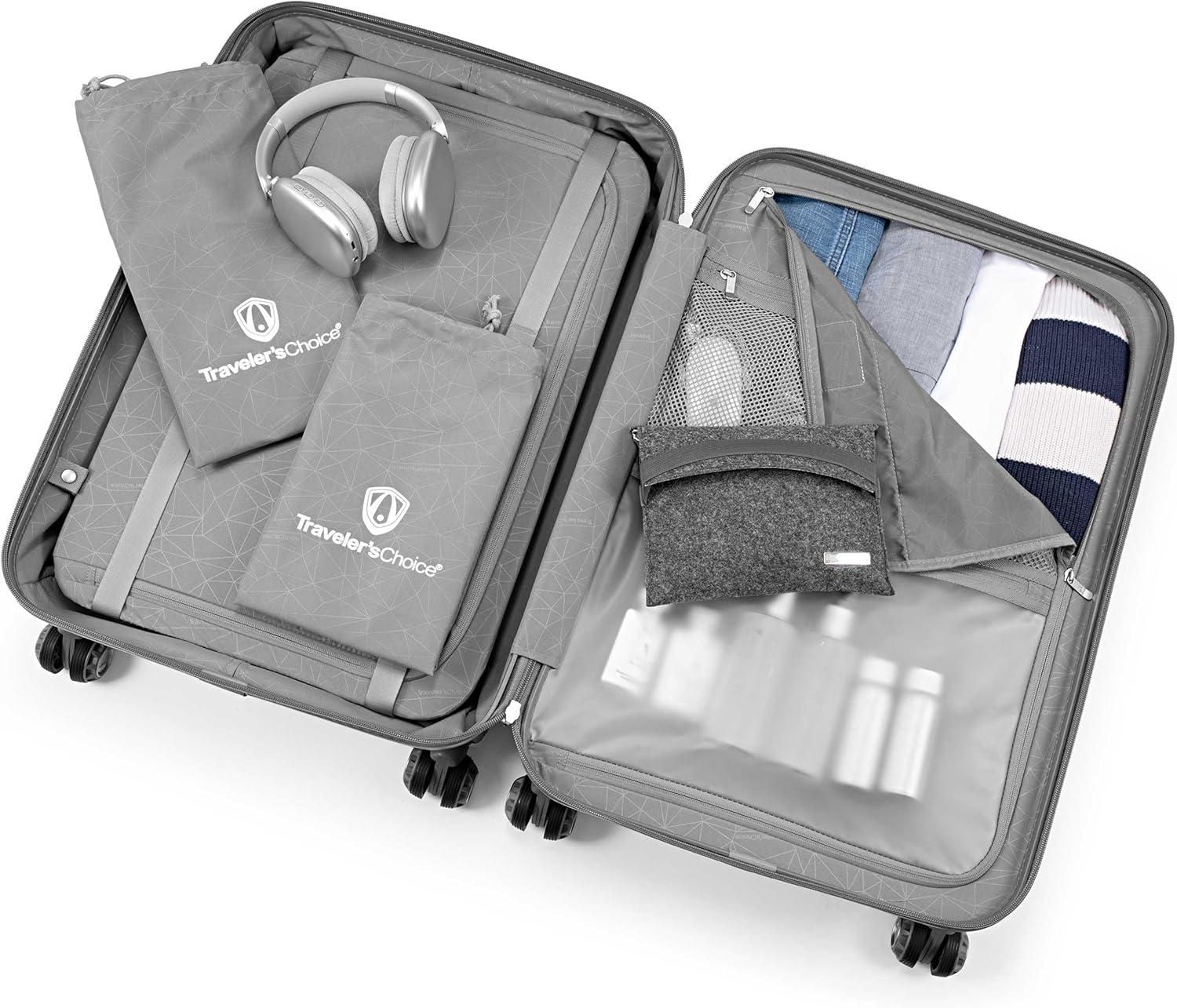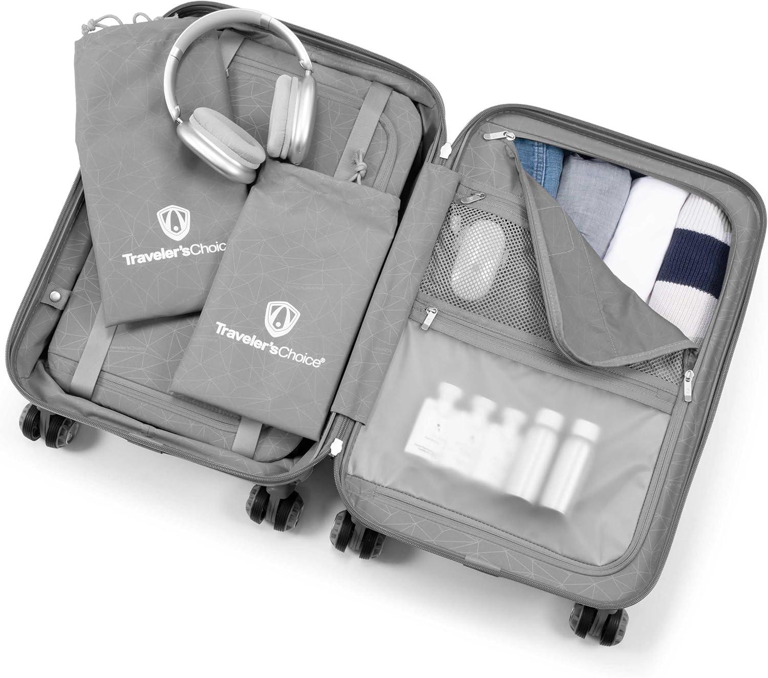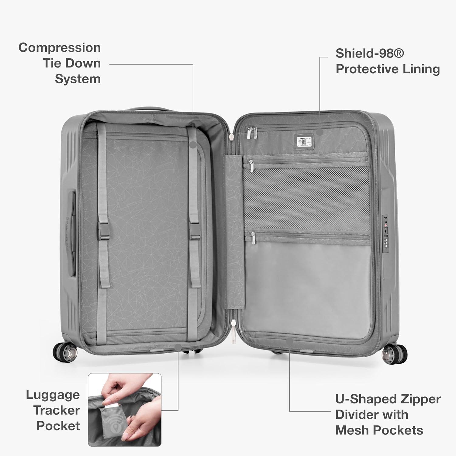 Make packing and traveling effortless with the Traveler's Choice Ultimax II Luggage Collection, designed for international travel and built for today’s modern traveler. Crafted from a durable 100% polycarbonate hard shell, this luggage offers maximum impact protection during transit. The upgraded Cyclone Spherical® spinner wheel system with ball bearings ensures smooth, stable gliding while reducing friction, even on rough surfaces. Keep your belongings secure with a built-in TSA-approved combination lock and premium YKK® zippers for enhanced durability. Navigate tight spaces with ease using the patented T-Cruiser® handle system for ergonomic control between tight spaces. Inside, the luggage is fully lined with Shield-98® protective fabric to keep it clean and fresh after each trip. A compression tie-down system and zippered divider maximize packing space and keep items organized. Separate dirty clothes with the included Shield-98® laundry bag and shoe pouch, and use the dedicated tracker pocket (tracker not included) for added peace of mind. Whether for a week-long getaway or overseas adventure, the Ultimax II delivers style, durability, and organization for every journey.