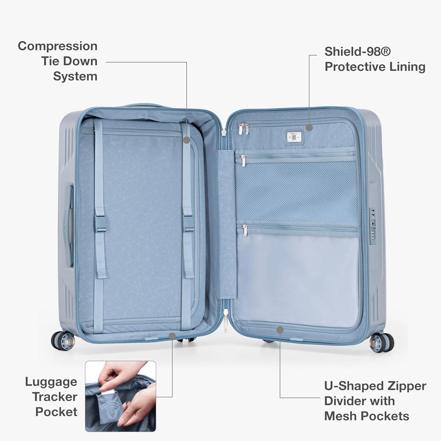 SHIELD-98 PROTECTIVE LINING: Fully lined with protective Shield-98 to keep your luggage clean and fresh after each use. Imprinted in a matching tone for a seamless, coordinated interior design.