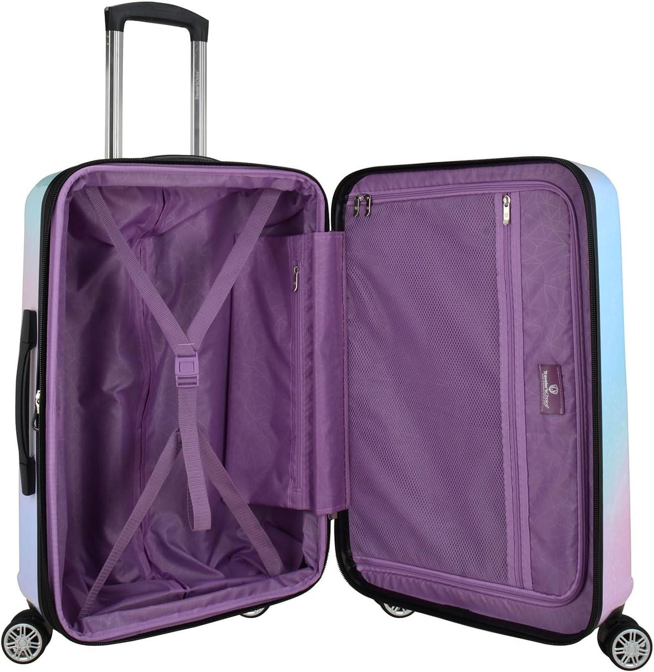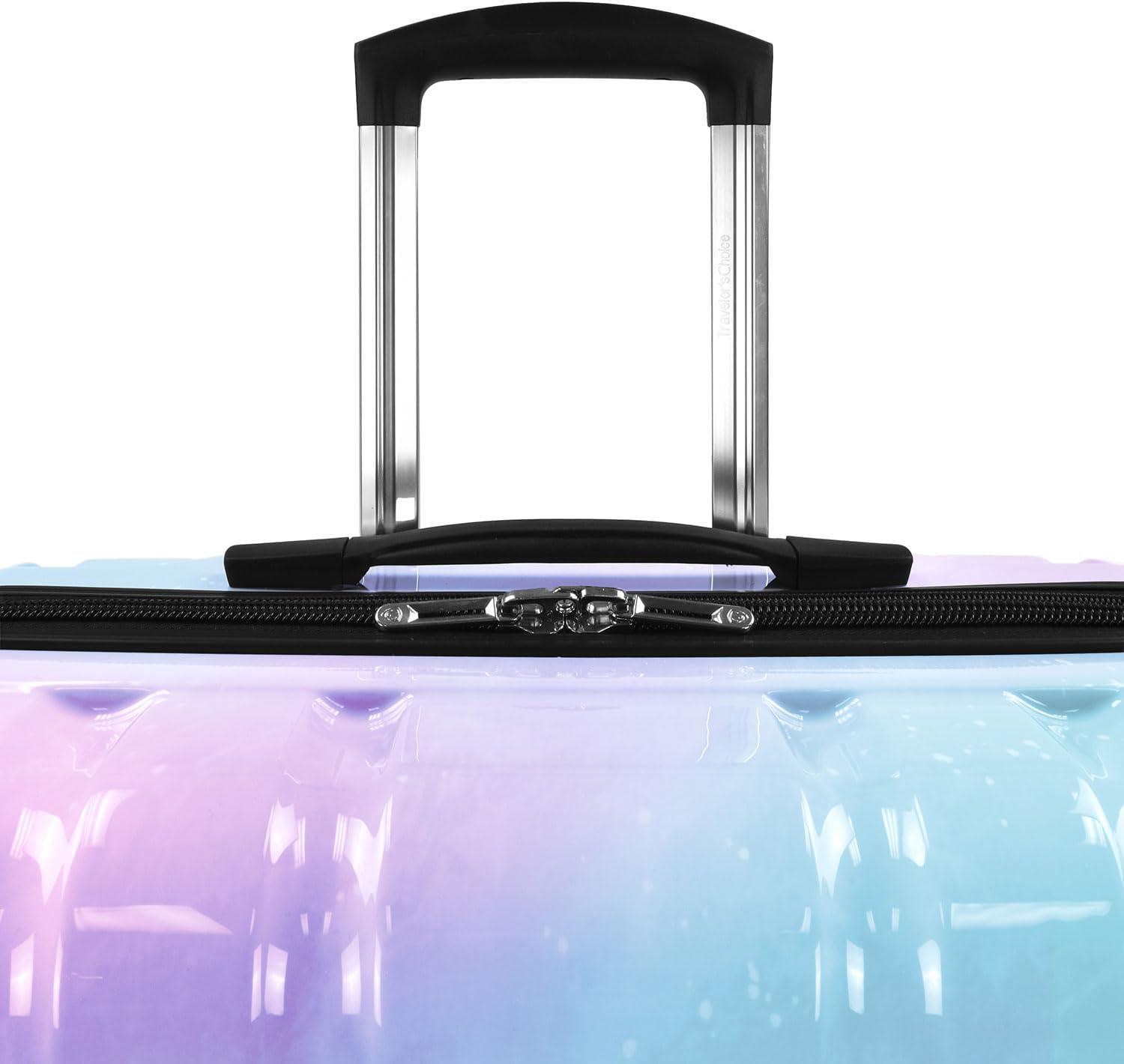 Elevate your travel experience with the Ruma II, designed with a sleek silhouette and a striking ombre laser finish. The impact-resistant hardshell, reinforced with durable PC Film, stands up to the demands of travel. Glide effortlessly through airports and city streets with 360-degree spinner wheels, while the telescopic handle with a push-button lock ensures smooth maneuverability and customizable height. Inside, the fully lined interior is thoughtfully organized with a zippered divider and detachable cross tie straps. A convenient expansion gusset adds extra packing space when you need it most. Coordinated hardware accents on the zipper pulls, wheel covers, and recessed handle complete the stylish and functional design.