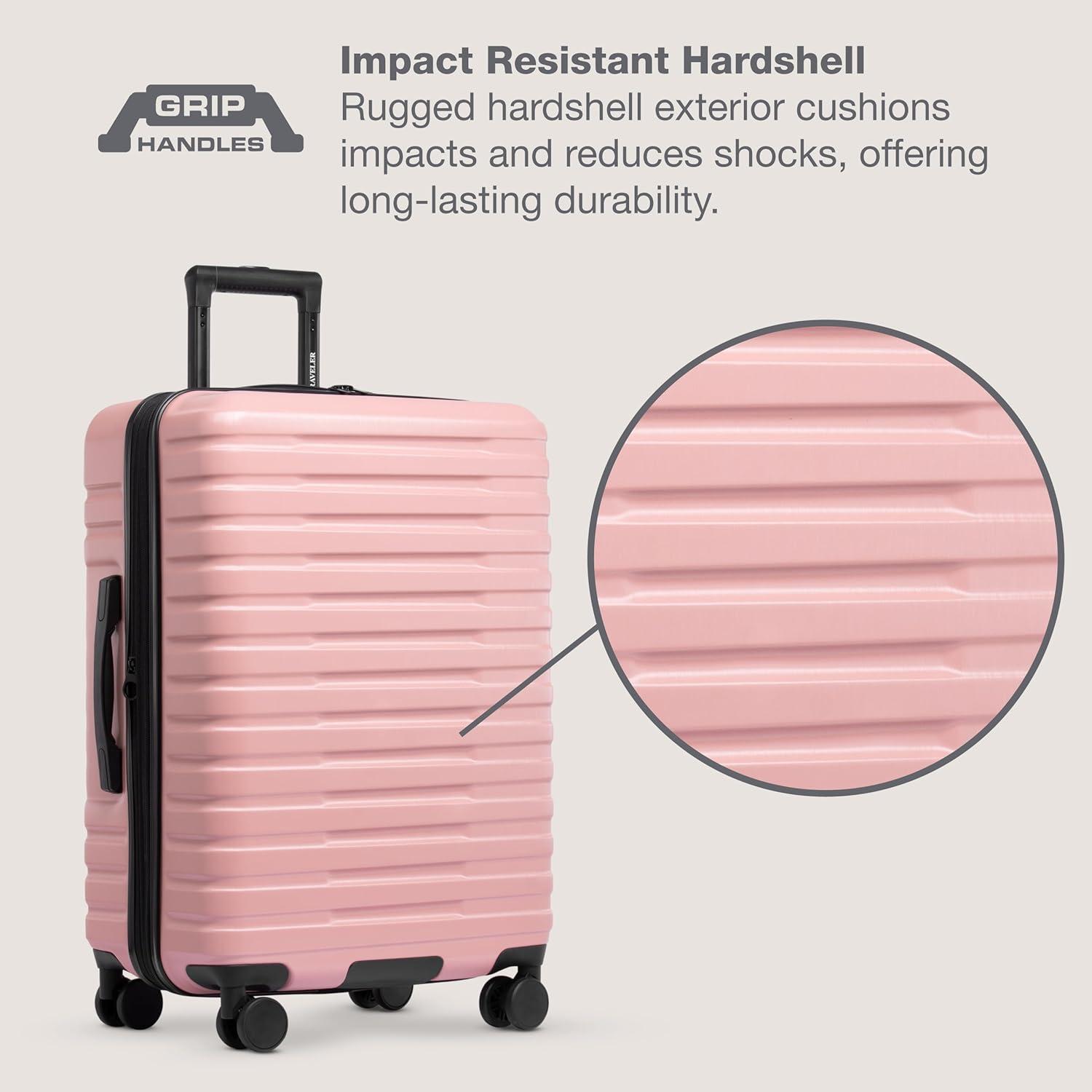 U.S. Traveler Boren Collection is built for durability and lightweight performance, making every journey smooth and effortless. Crafted with a water-resistant hardshell exterior, it’s designed to withstand impact and protect your belongings through any adventure. Navigate with ease using the extendable telescopic handle and 360° spinner wheels for seamless maneuverability. The top and side grab handles make lifting and carrying convenient, while the recessed handle and wheels maximize packing capacity and meet FAA carry-on size requirements. Inside, the fully lined, imprinted interior features a clamshell opening with a zippered divider, cross straps, and organizational pockets, keeping your items neatly arranged and secure during transit. For added convenience, the 22” carry-on includes a built-in USB port and interior power bank compartment, letting you stay connected and charge devices on the go (power bank not included). Whether for business or leisure, travel with ease and confidence with the U.S. Traveler Boren Collection. Exterior Dimensions: 25.5”H x 17.25”W x 11”D (7. 82 lbs. ) Interior Dimensions: 23” H x 16. 75”W x 10.5”D